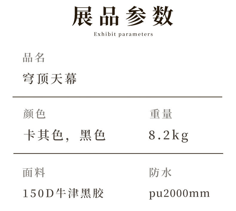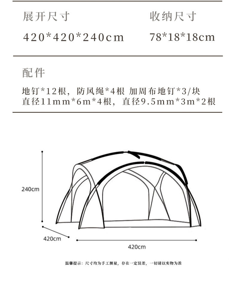 | Tamaño | 5-8 Hombre (420 * 420 * 240cm) |