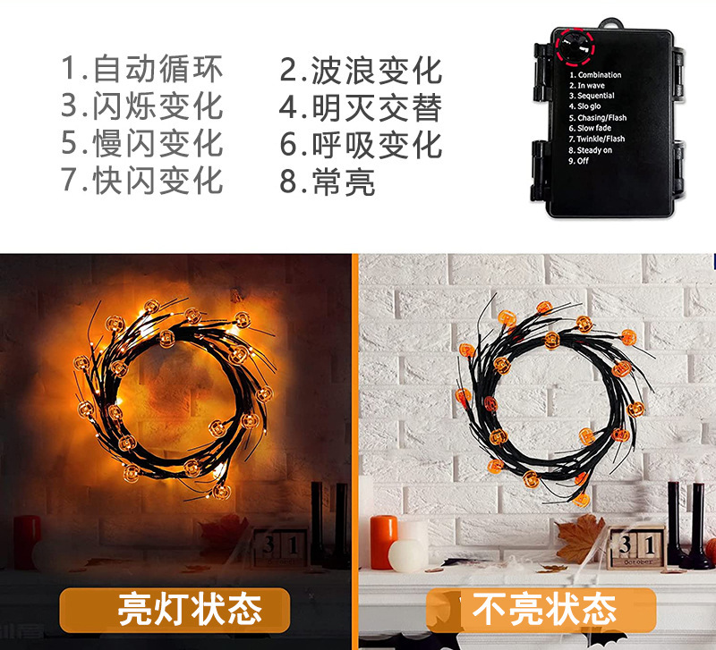 | Color de luz | 18 murciélagos-Lámpara de ratán,18 luces de ratán calabaza |