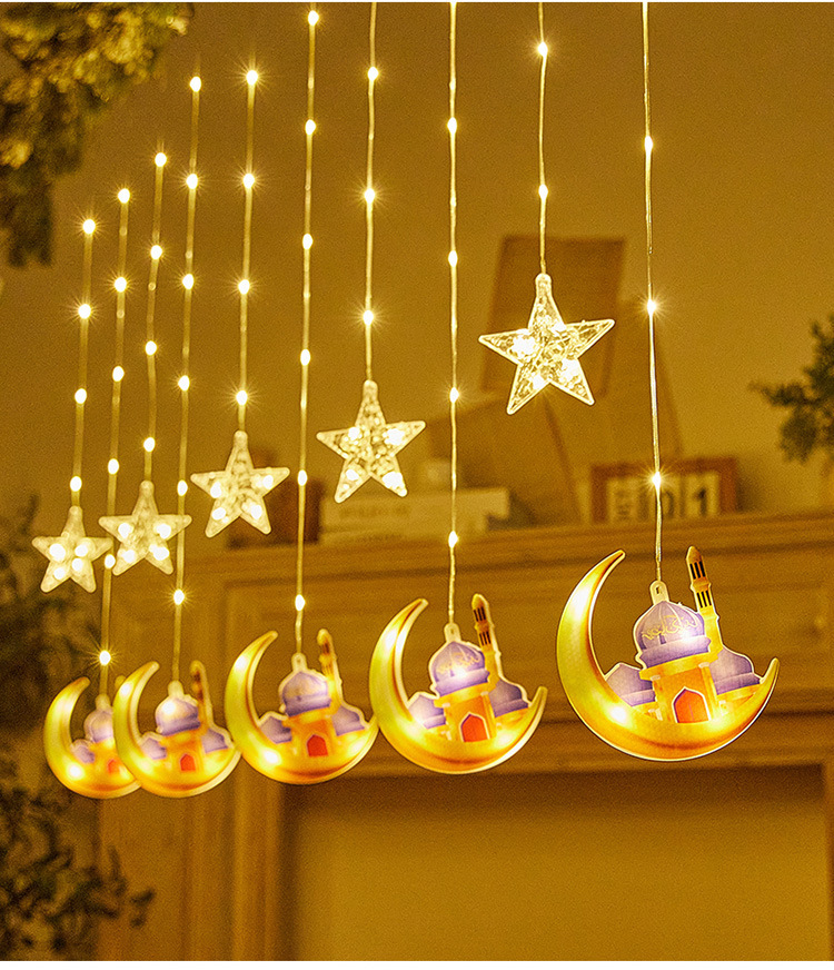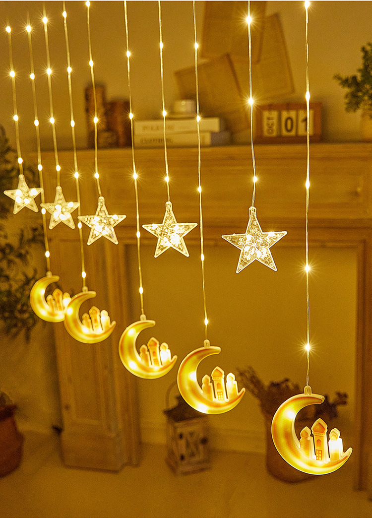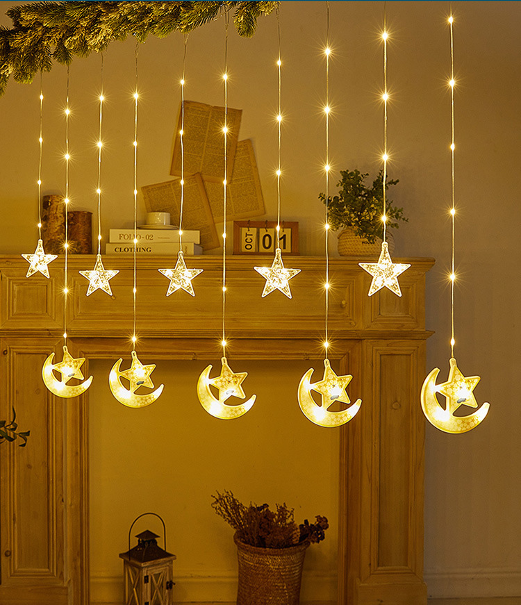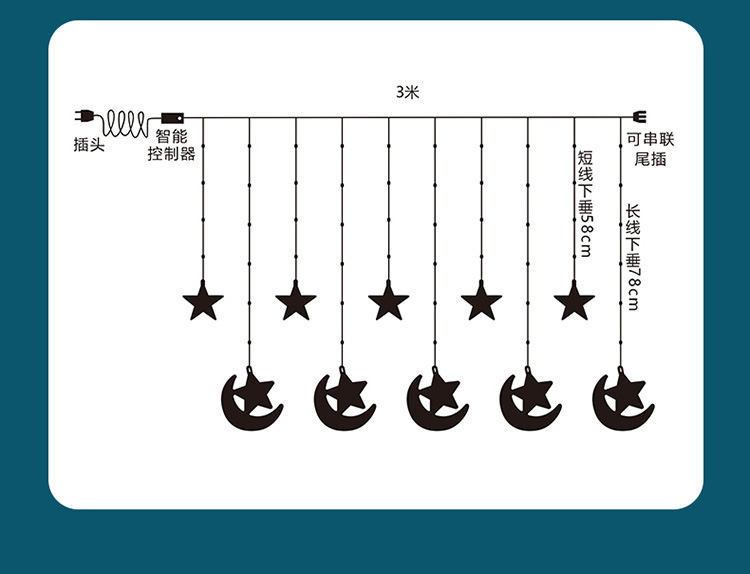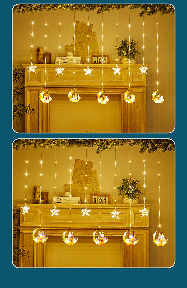 | Color de luz | Lámpara de cortina pintada de goma colgante (STAR + Moon tres Castillo) |