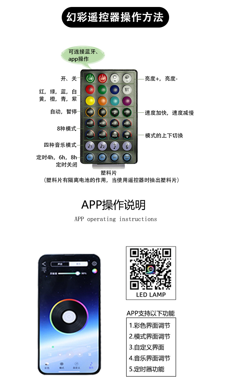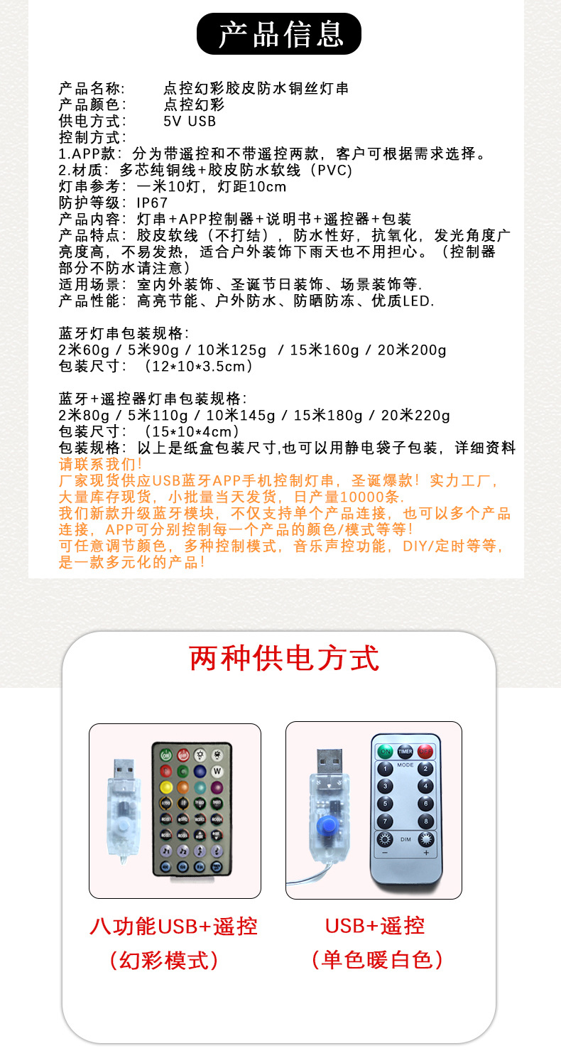 | Color de luz | Color mágico (Control Remoto + control Bluetooth),Blanco cálido (USB + Control remoto) |