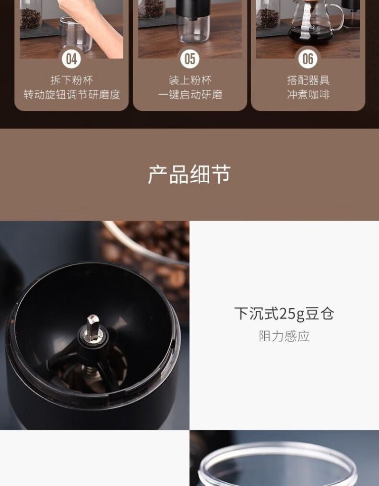 Máquina de café automática molino de granos eléctrico pequeño molino de granos de café ligero prensador de polvo molino seco portátil