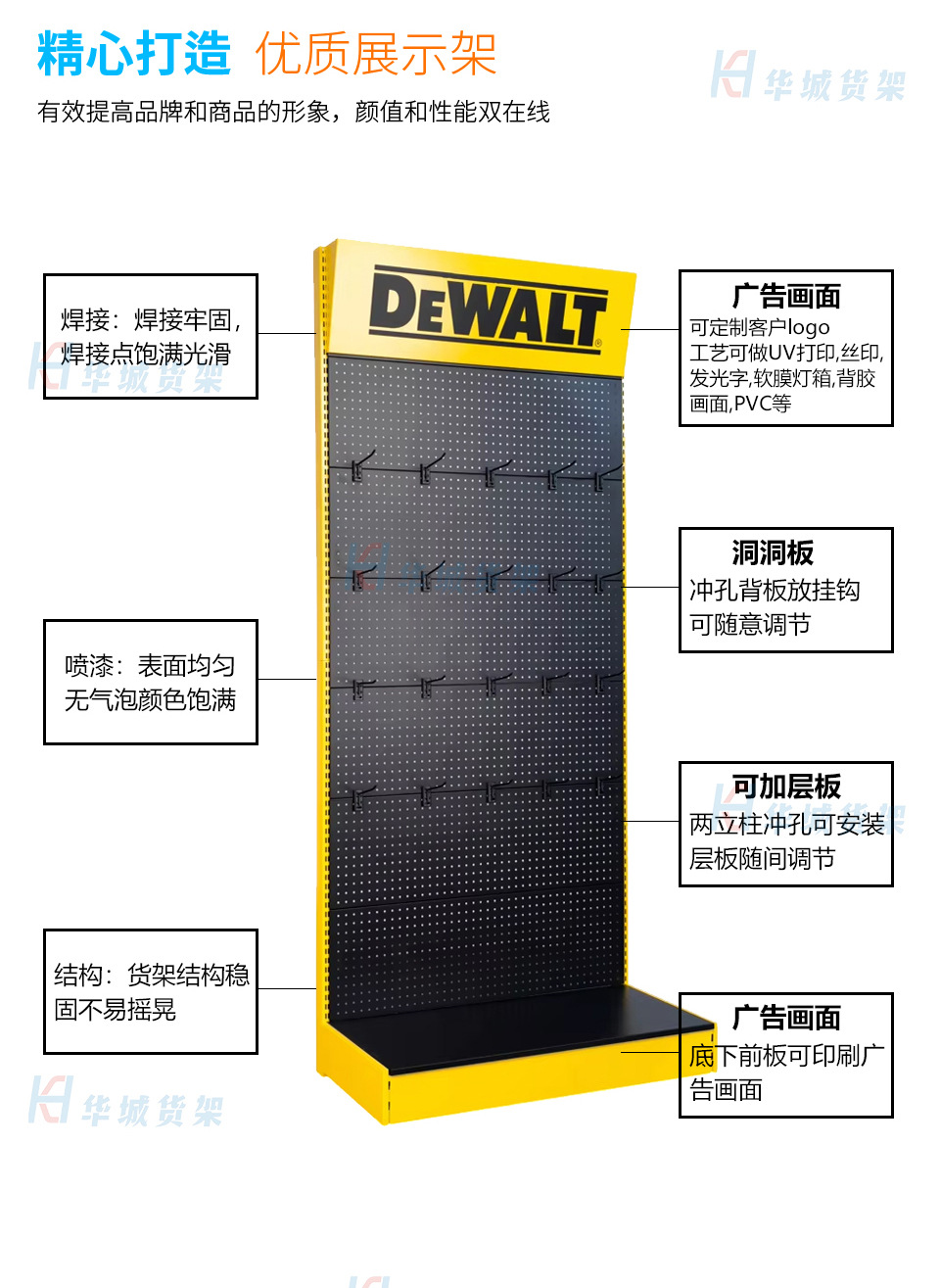Personalizada placa de agujero estante de exhibición de herramientas de hardware logotipo luminoso del supermercado personalizable estante de exhibición de herramientas desmontables
