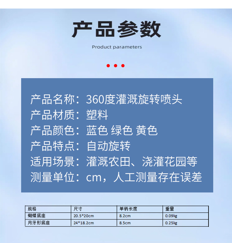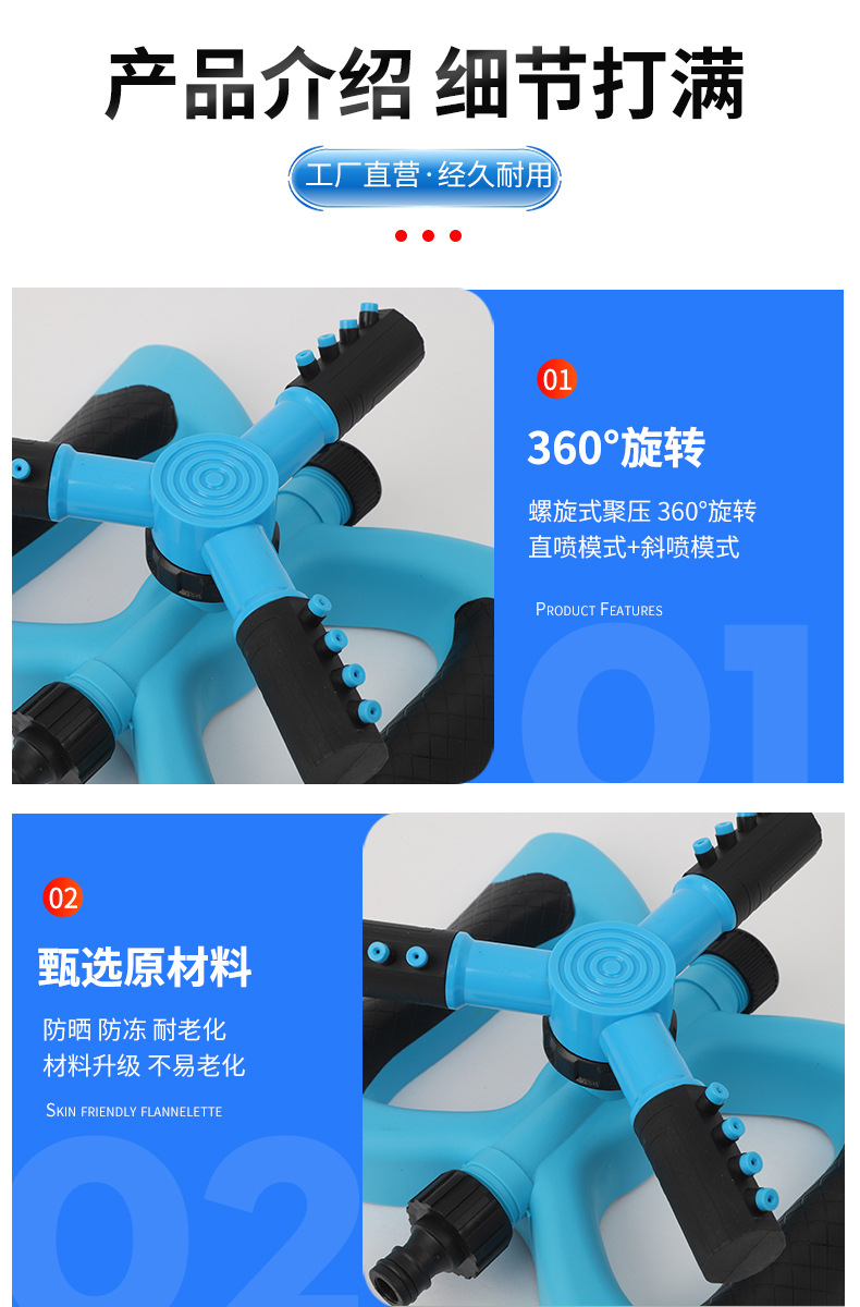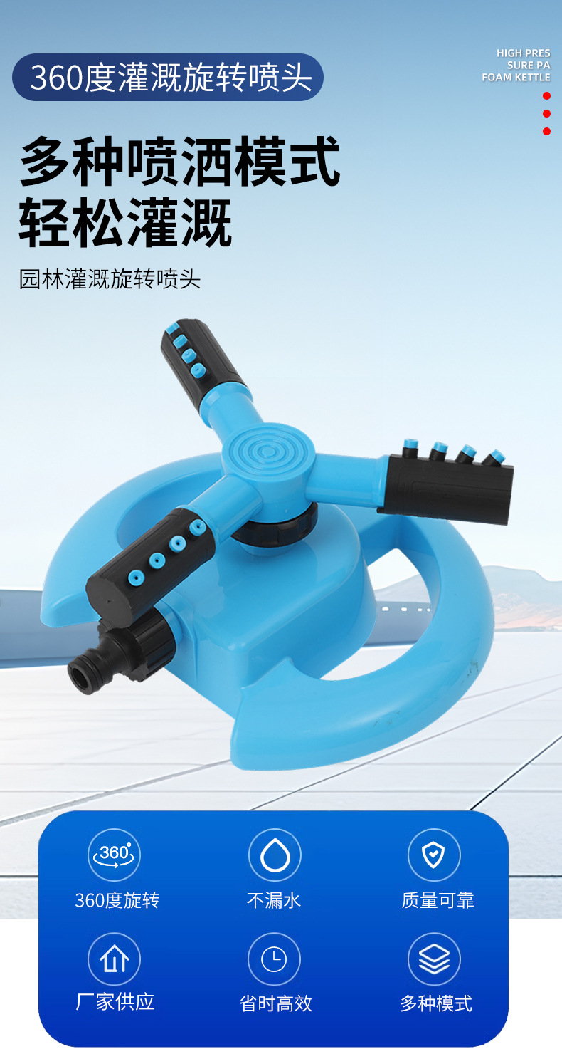 360 grados de riego rociador giratorio en forma de media luna rociador tripartito rociador de agua rociador de paja rociador