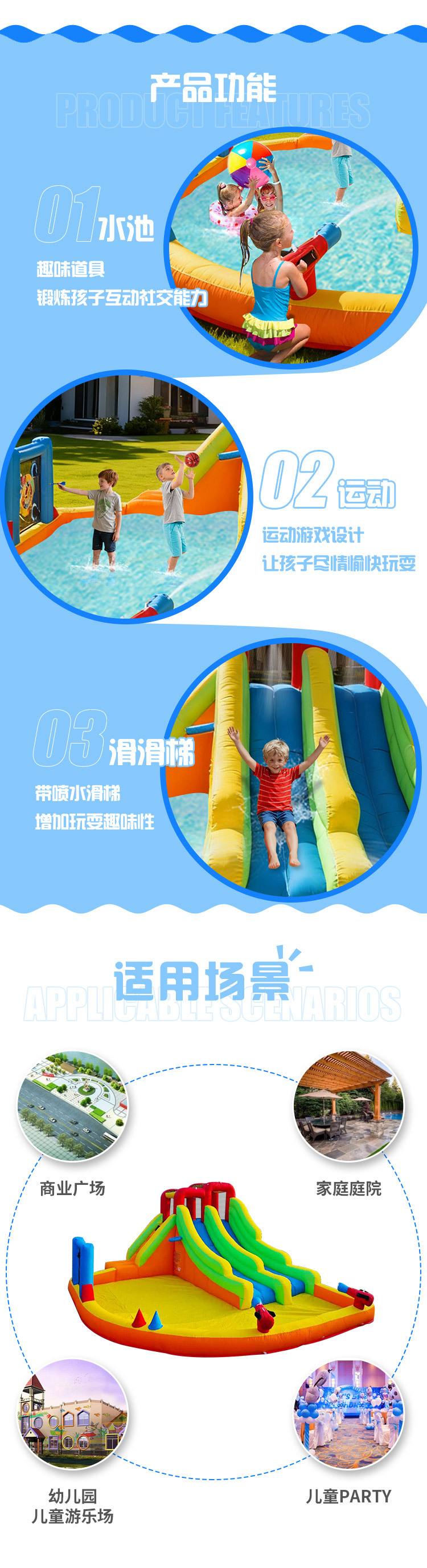 | Función | Trampolín, slide, escalada |