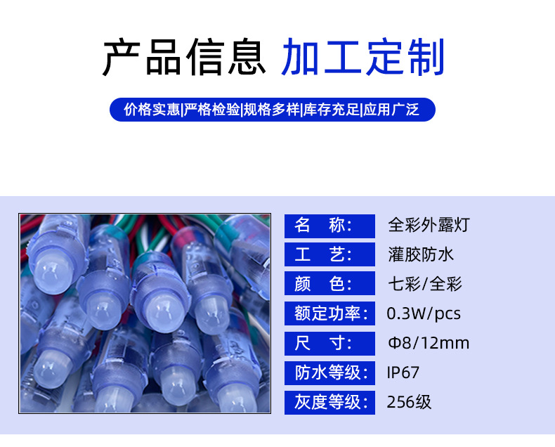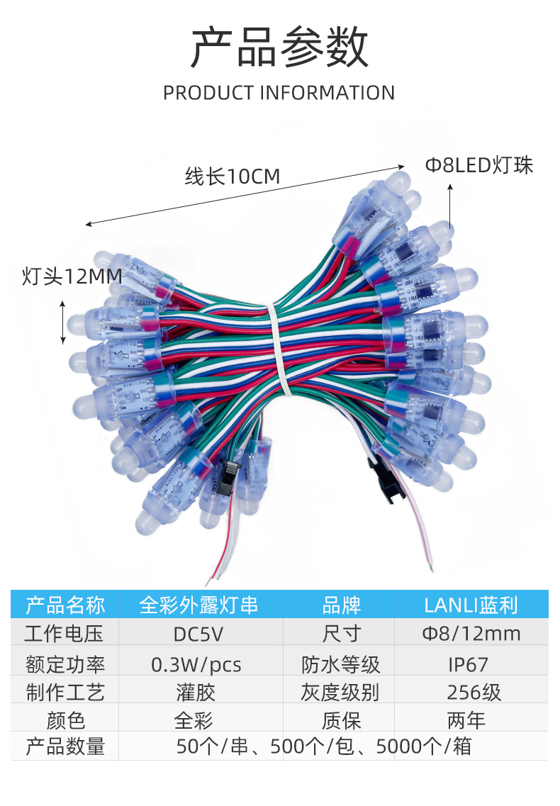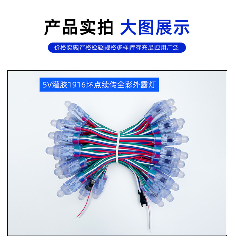 | Especificaciones | 5V colorido luz expuesta,5V tres líneas a todo color 1903 luz expuesta,5V a todo color WS2811 a todo color luz expuesta,5V a todo color 1916 luces expuestas de continuación de puntos defectuosos,12V a todo color 1918 luces expuestas de continuación de puntos defectuosos,12V a todo color WS2811 luz expuesta,Personalización de color de línea larga |