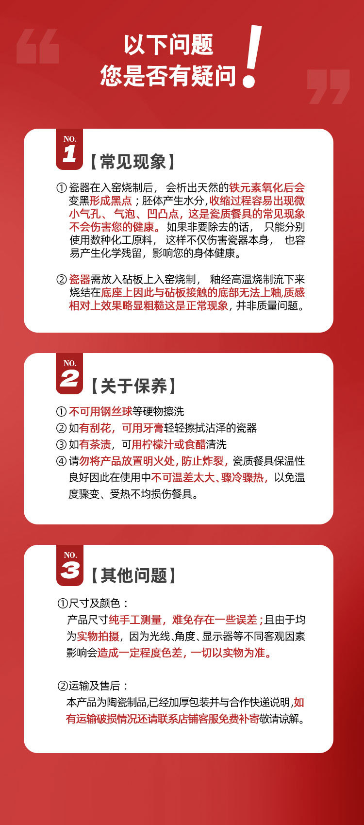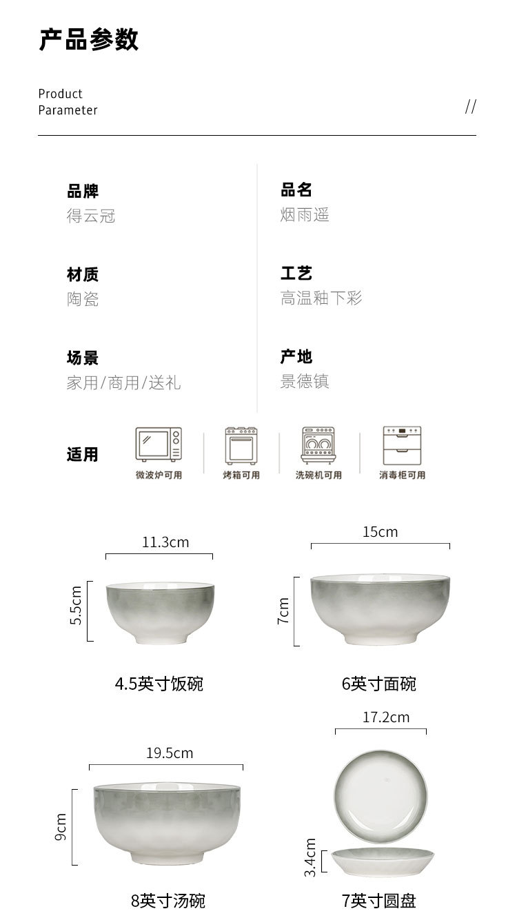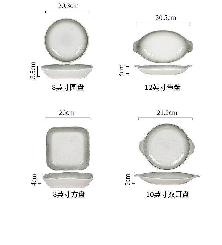 | Color | Yanyu Yao - 4.5 pulgadas arroz tazón, Yanyu Yao - 6 pulgadas fideos tazón, Yanyu Yao - 7 pulgadas plato, Yanyu Yao - 8 pulgadas plato, Yanyu Yao - 8 pulgadas plato de sopa, Yanyu Yao - 8 pulgadas plato cuadrado, Yanyu Yao - 12 pulgadas plato de pescado |