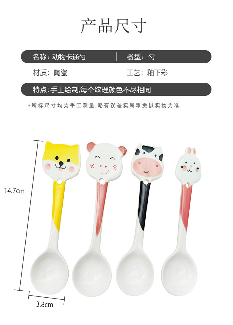 | Especificaciones | Cuchara de dibujos animados para cerdos, cuchara de dibujos animados para conejos, cuchara de dibujos animados para perros, cuchara de dibujos animados para vacas |