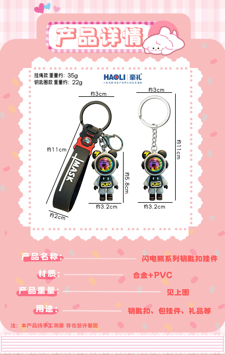 | Colores | Grabado gratis para más de 2 piezas,Pequeño oso relámpago negro-llavero,Llavero cian pequeño oso relámpago,Pequeño oso relámpago morado-llavero,Llavero rosa pequeño oso relámpago,Llavero de oso relámpago negro y rojo,Llavero de oso relámpago azul y blanco,Pequeño oso relámpago-negro,Pequeño oso relámpago-cian,Pequeño oso relámpago-púrpura,Pequeño oso relámpago-rosa,Pequeño oso relámpago-negro rojo,Pequeño oso relámpago-azul y blanco |