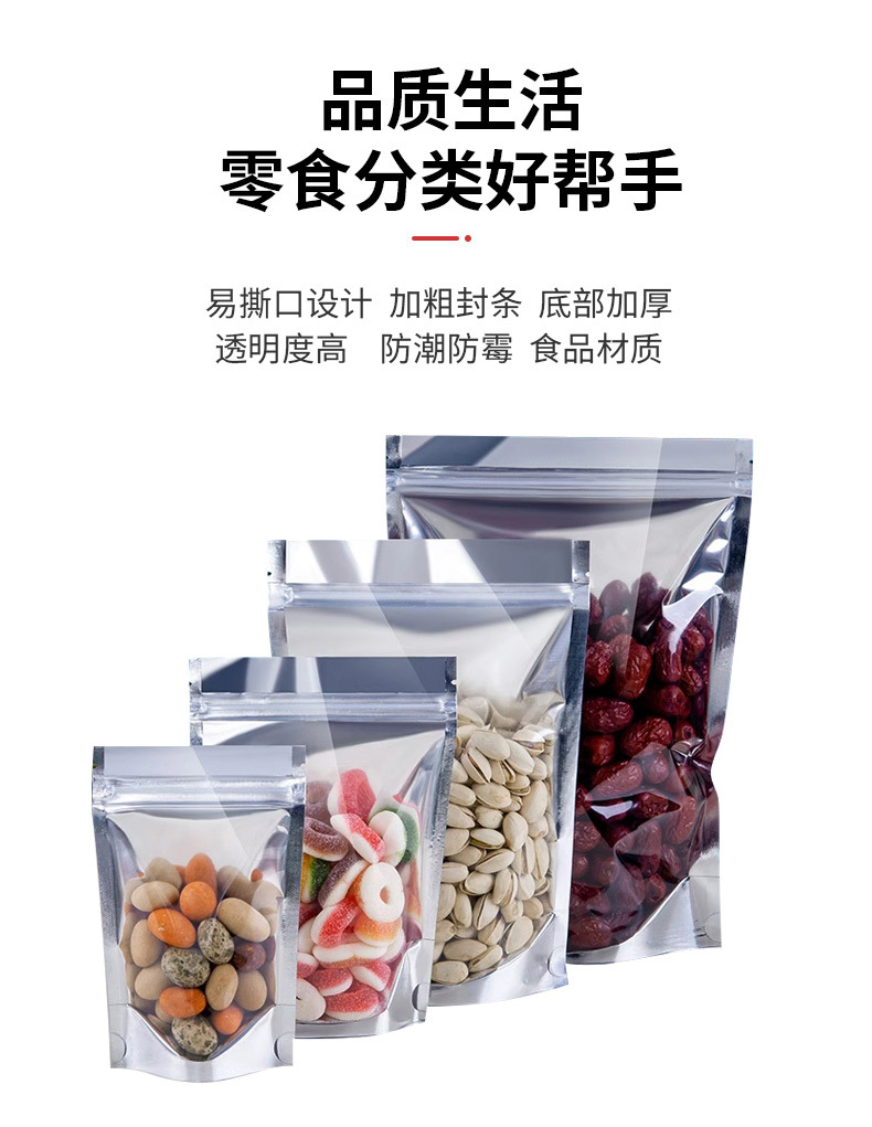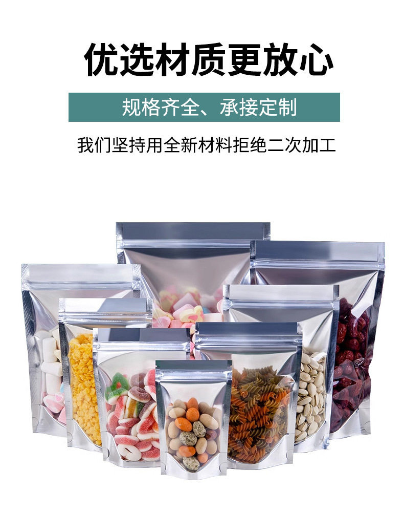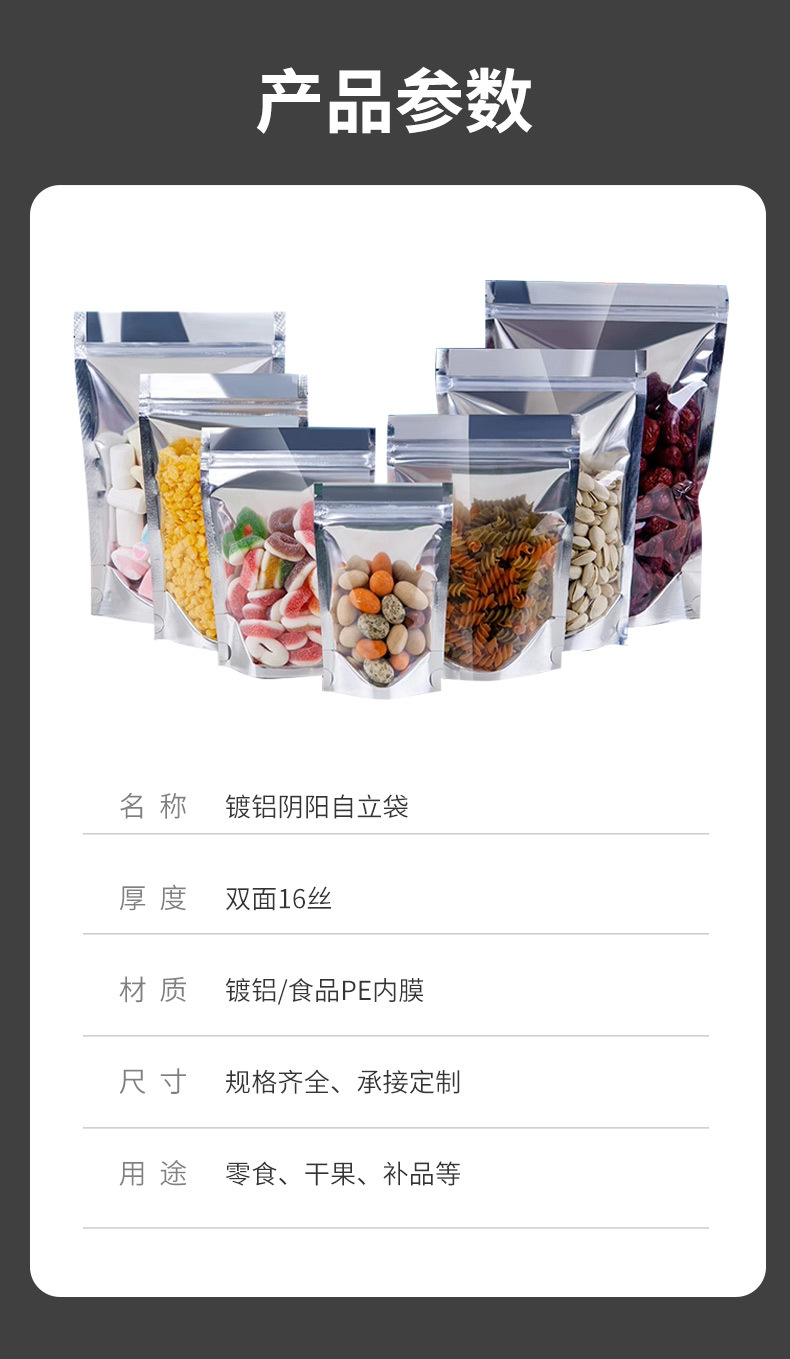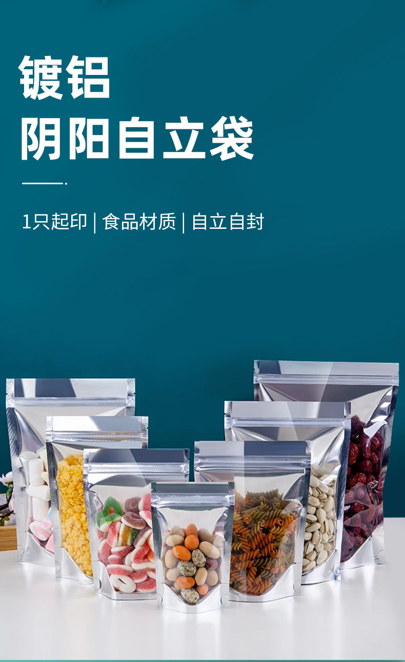 Bolsa autoportante de yin y yang chapada en aluminio, bolsa ziplock de papel de aluminio, bolsa de embalaje de alimentos engrosada con ventana, bolsa sellada con cremallera translúcida