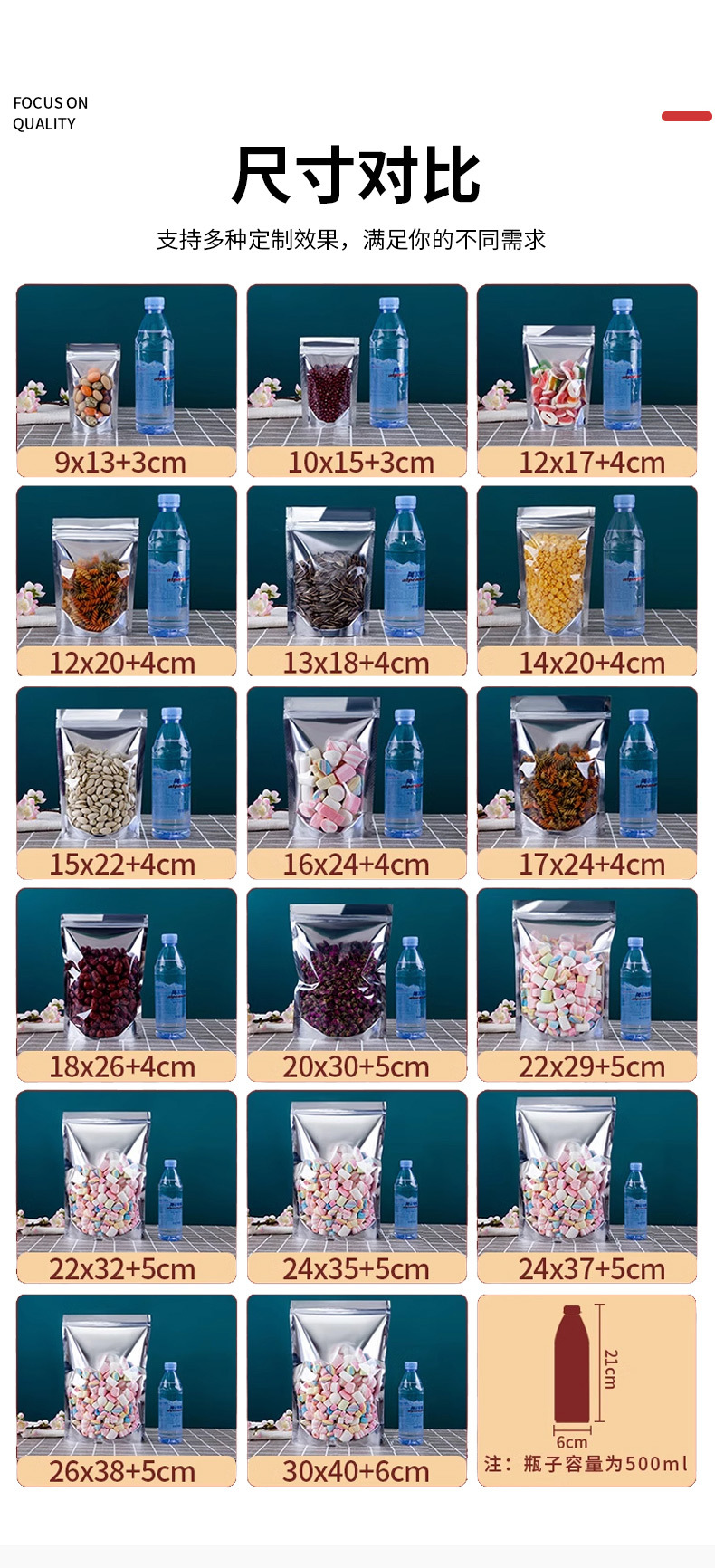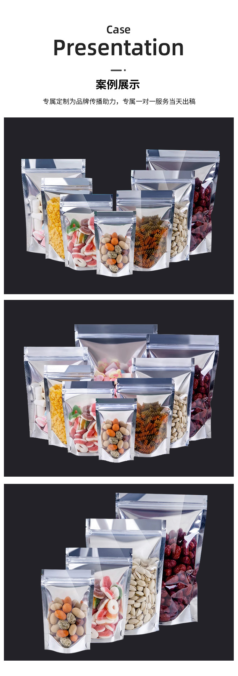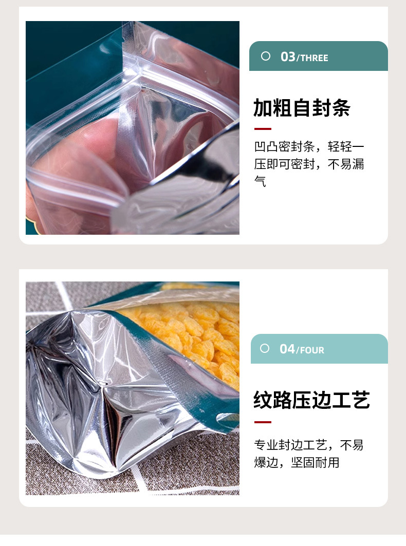 Bolsa autoportante de yin y yang chapada en aluminio, bolsa ziplock de papel de aluminio, bolsa de embalaje de alimentos engrosada con ventana, bolsa sellada con cremallera translúcida