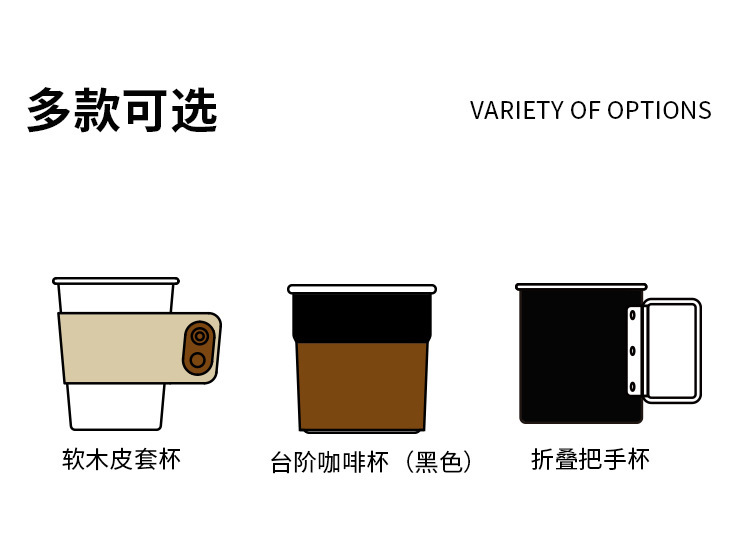 | Colores | Taza de paso negro (juego de PU),Taza de paso verde (juego de PU),Taza de paso negro (funda de silicona),Taza de escalón verde (funda de silicona),Taza de cuero de corcho,Taza de manija plegable |