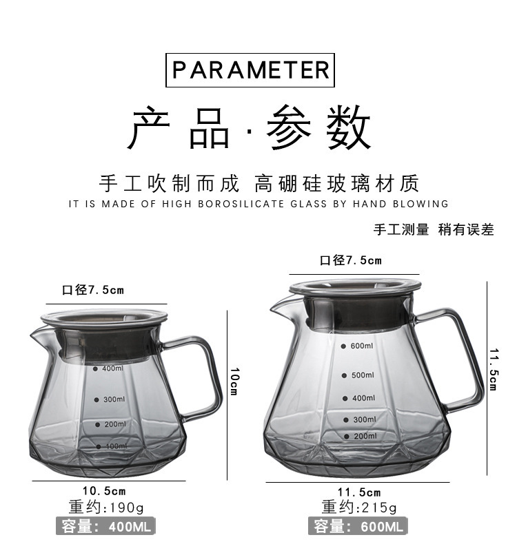 | Color | 400ML transparente octogonal diamante olla, 600ML transparente octogonal diamante olla, 400ML gris ahumayo octogonal diamante olla, 600ML gris ahumayo octogonal diamante olla, soporte de nuez negro + silicona + V01 taza de filtro transparente, soporte de nuez negro + silicona + V02 taza de filtro transparente, soporte de nuez negro + silicona + V01 taza de filtro gris ahumayo, soporte de nuez negro + silicona + V02 taza de filtro gris ahumayo, soporte de nuez negro + silicona + V02 taza de filtro gris ahumayo, 400ML ceniza octogonal + soporte de nuez negro (con silicona) + pequeño embudo espiral (gris), 600ML ceniza octogonal + soporte de nuez negra (con silicona) + embudo espiral grande (gris) |