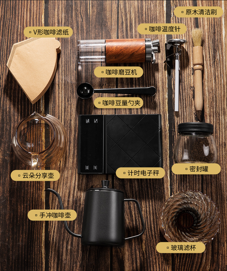 | Color | [Edición básica de entrada] set de cafetera de siete piezas, [Edición insignia senior] set de cafetera de ocho piezas, [Edición de lujo boutique] set de cafetera de nueve piezas, [Edición de experto maestro] set de cafetera de diez piezas |