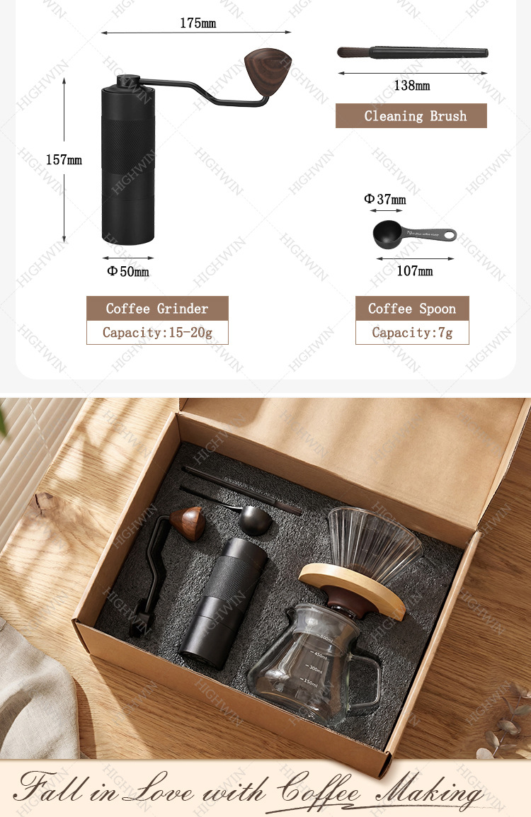 | Componentes | Cafetera, cuchara, taza de filtro, molinadora de frijoles manual |