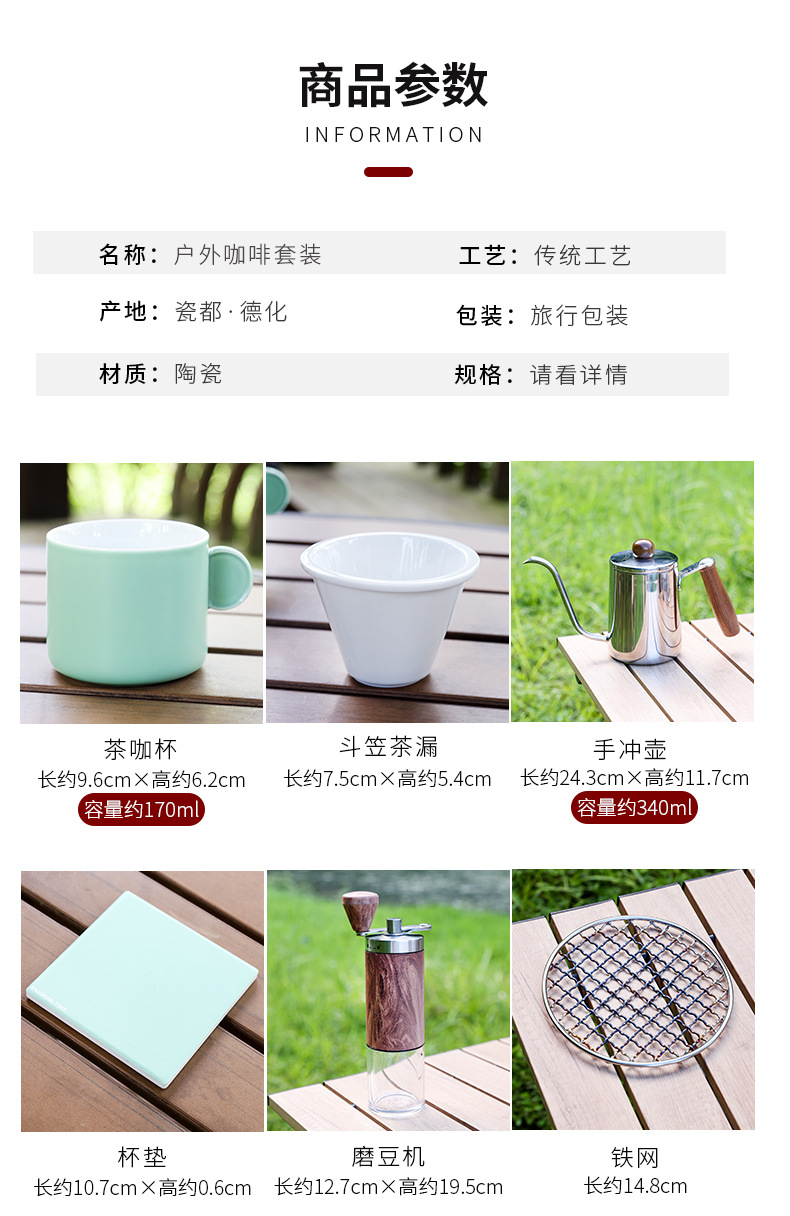 | Componentes | Maleta de viaje taza de té y café de cerámica olla de lavado manual molino de frijoles cabeza de horno |