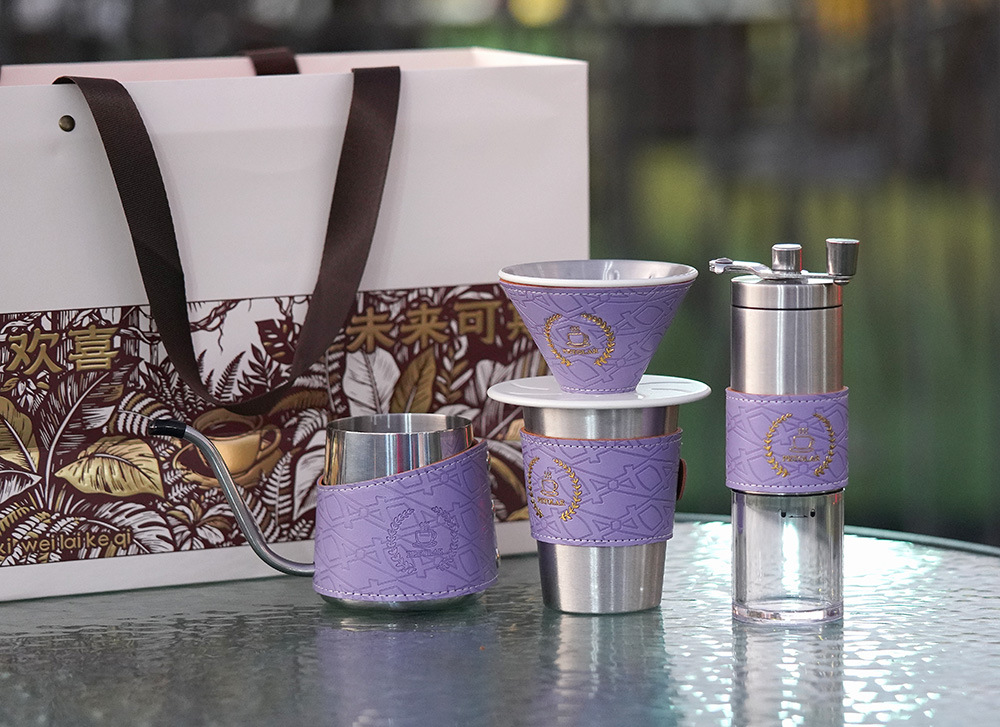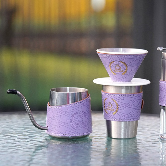 | Color | Botella de lavado manual + cubierta de cuero púrpura, molinillo de frijoles de acero inoxidable + cubierta de cuero púrpura, taza de una sola capa + cubierta de cuero púrpura + tapa, taza de filtro de acero inoxidable blanco + cubierta de cuero púrpura, lata de frijoles de 60G + cubierta de cuero púrpura, lata de frijoles de 80G + cubierta de cuero púrpura |