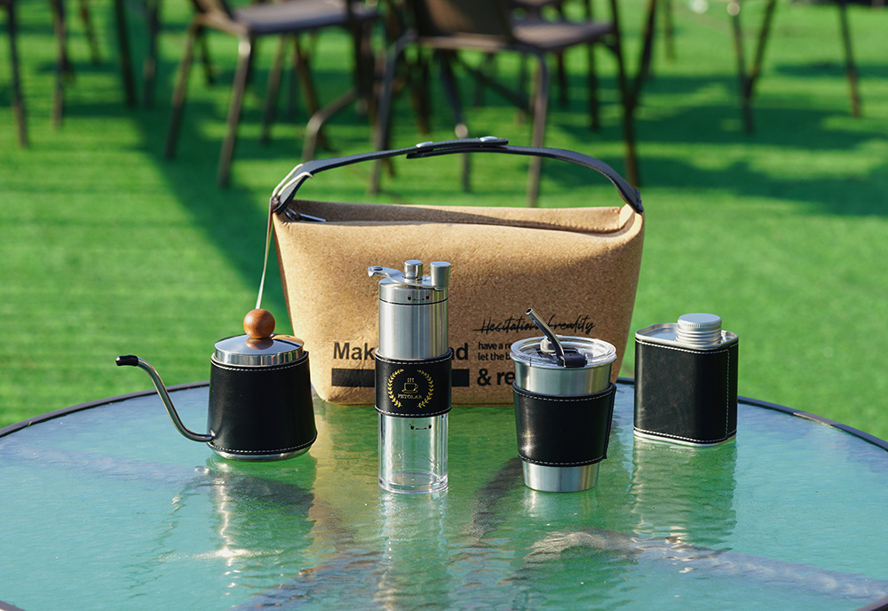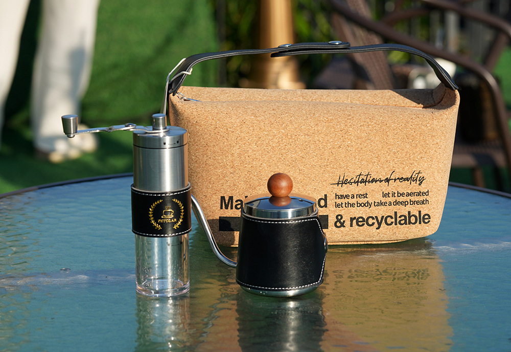 | Componentes | Bolsas de mano, tazas de café, cafetera |