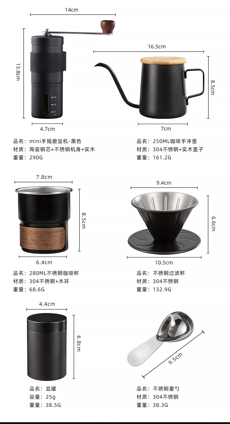 | Componentes | Molinadora de frijoles, cucharas de medición, tazas de filtro, olla de lavado manual |