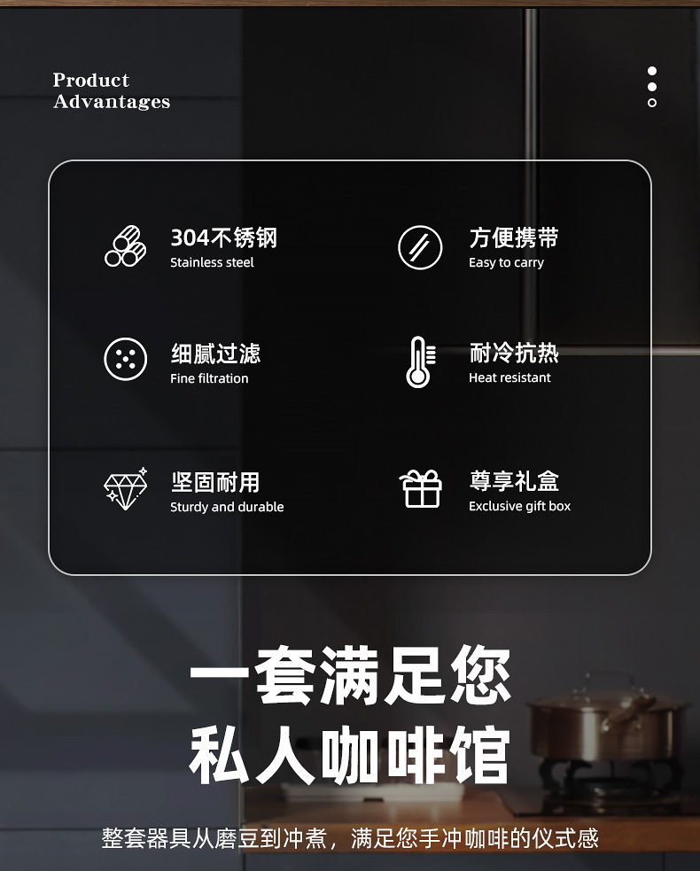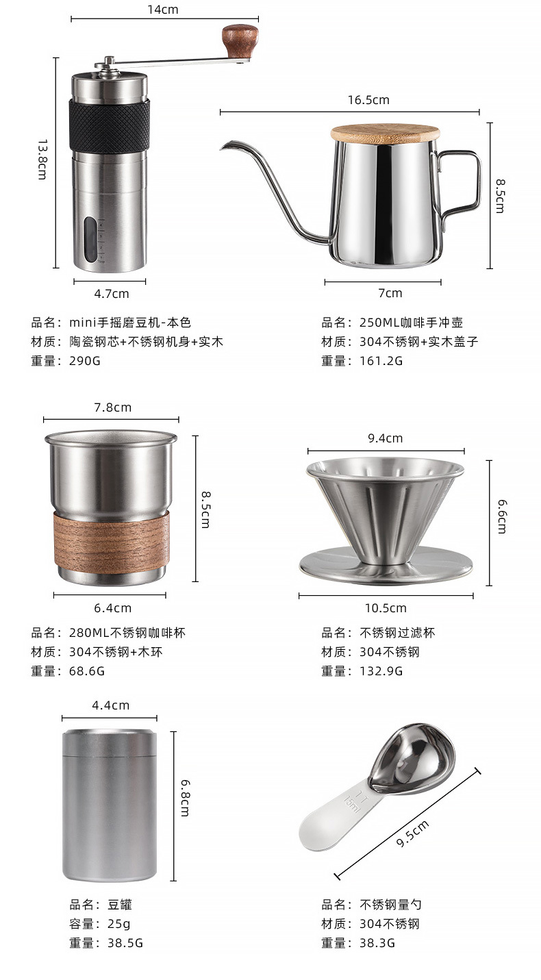 | Componentes | Molinadora de frijoles, taza de café, cuchara de medición, taza de filtro, olla de lavado manual |