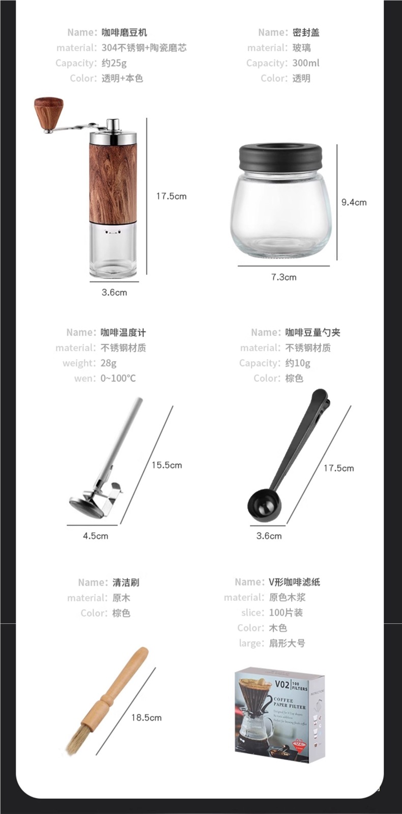 | Color | Conjunto básico de 5 piezas [café en polvo] conjunto básico de 7 piezas [café en polvo] conjunto básico de 7 piezas [granos de café] conjunto básico de 8 piezas [granos de café] conjunto avanzado de 9 piezas [granos de café] conjunto de alto nivel de 6 piezas [granos de café] conjunto básico de 8 piezas [granos de café] (caja de regalo), 8 piezas [granos de café] (caja de regalo), 9 piezas [granos de café] edición insignia (caja de regalo), 10 piezas [granos de café] edición maestra (caja de regalo), Walnut 7 piezas [café en polvo] conjunto básico, Walnut 7 piezas [granos de café] conjunto básico, Walnut 8 piezas [granos de café] conjunto avanzado, Walnut 9 piezas [granos de café] conjunto de alto nivel, Walnut 8 piezas [granos de café] (caja de regalo), Walnut 8 piezas [granos de café] (caja de regalo), Walnut 9 piezas [granos de café] edición insignia (caja de regalo), Walnut 10 piezas [granos de café] edición maestra (caja de regalo) |