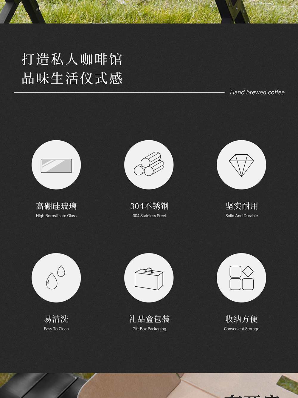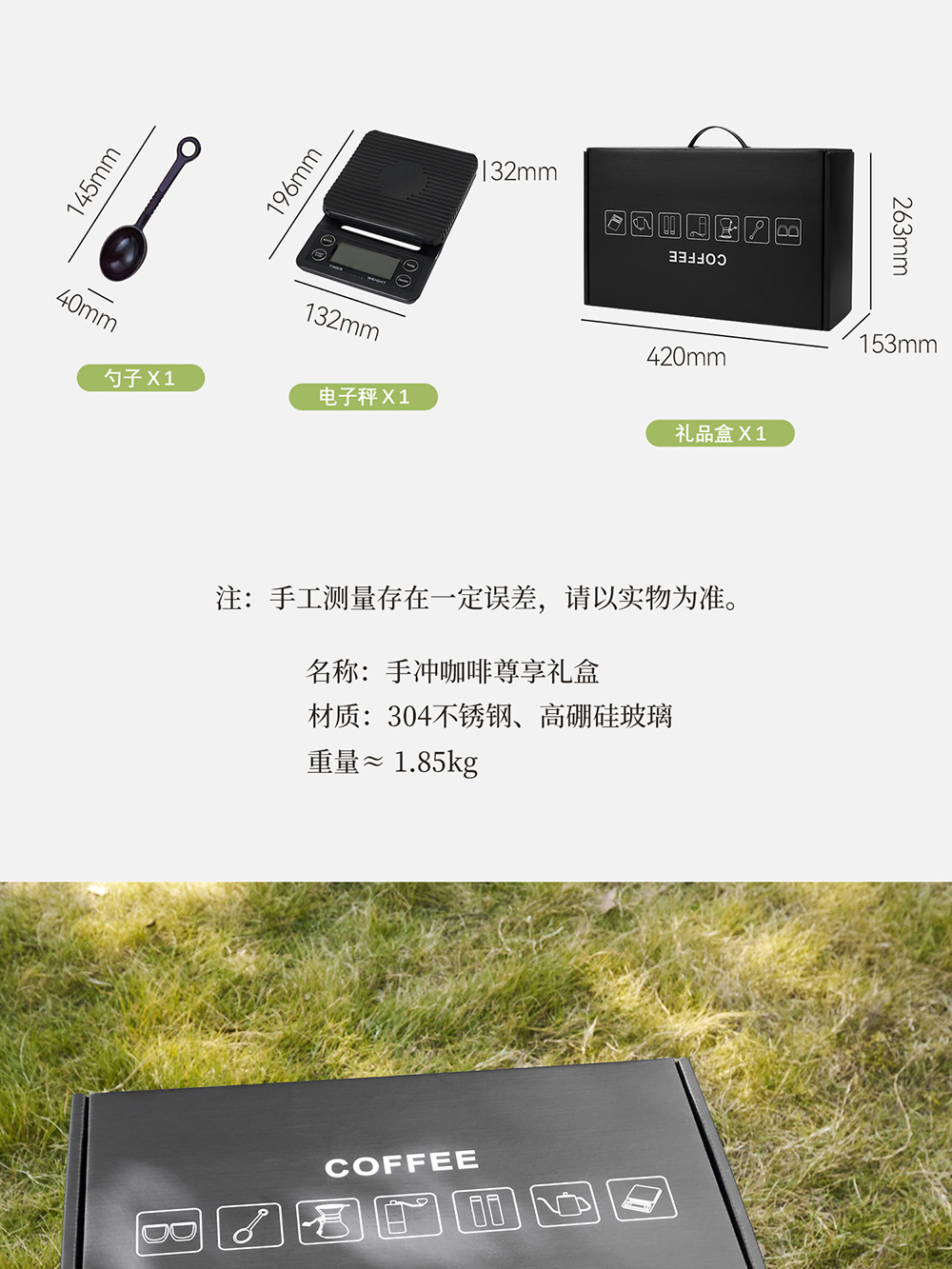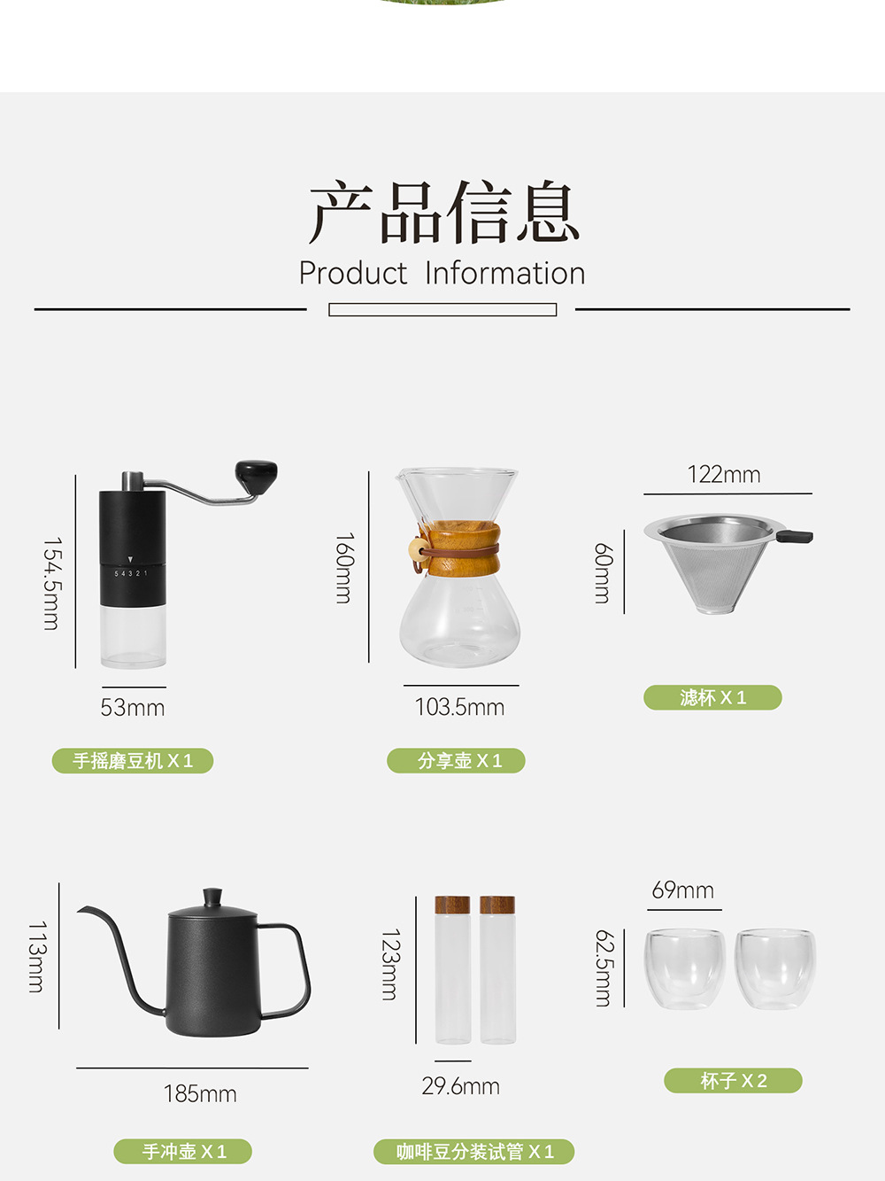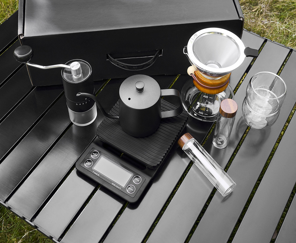 | Componentes | Mezclador, taza de café, temporizador, molinador de frijoles manual, hervidor de lavado manual |