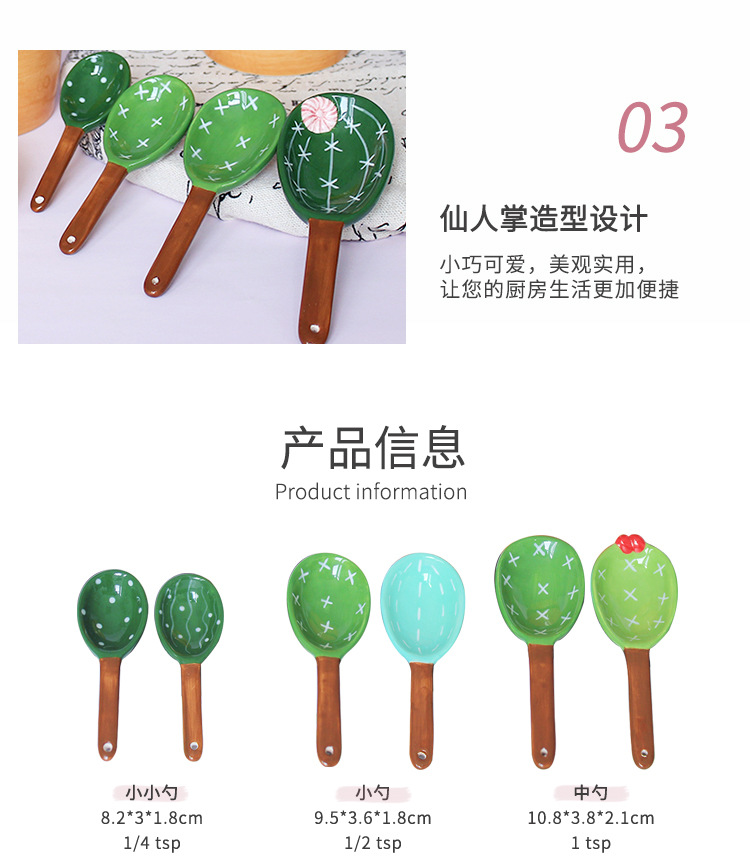 | Especificaciones | Cuchara medidora de cactus para herramientas de cocina W210316,Cuchara medidora de cactus verde para herramientas de cocina W210342,Cuchara medidora de flores para herramientas de cocina W200611 |