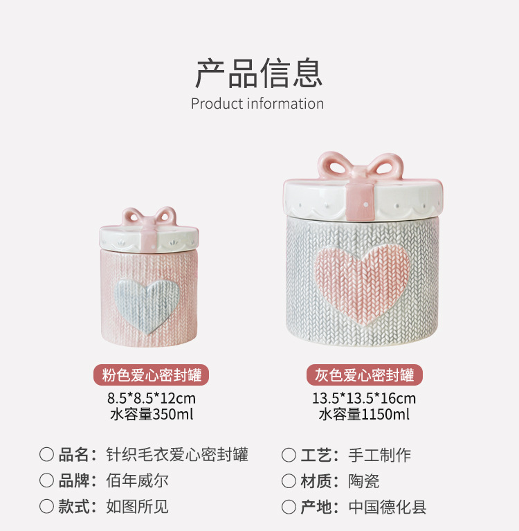 Boda americana Día de San Valentín rosa corazón de la niña cerámica sellado lata de almacenamiento lata de almacenamiento puede esmaltado bajo el proceso de color