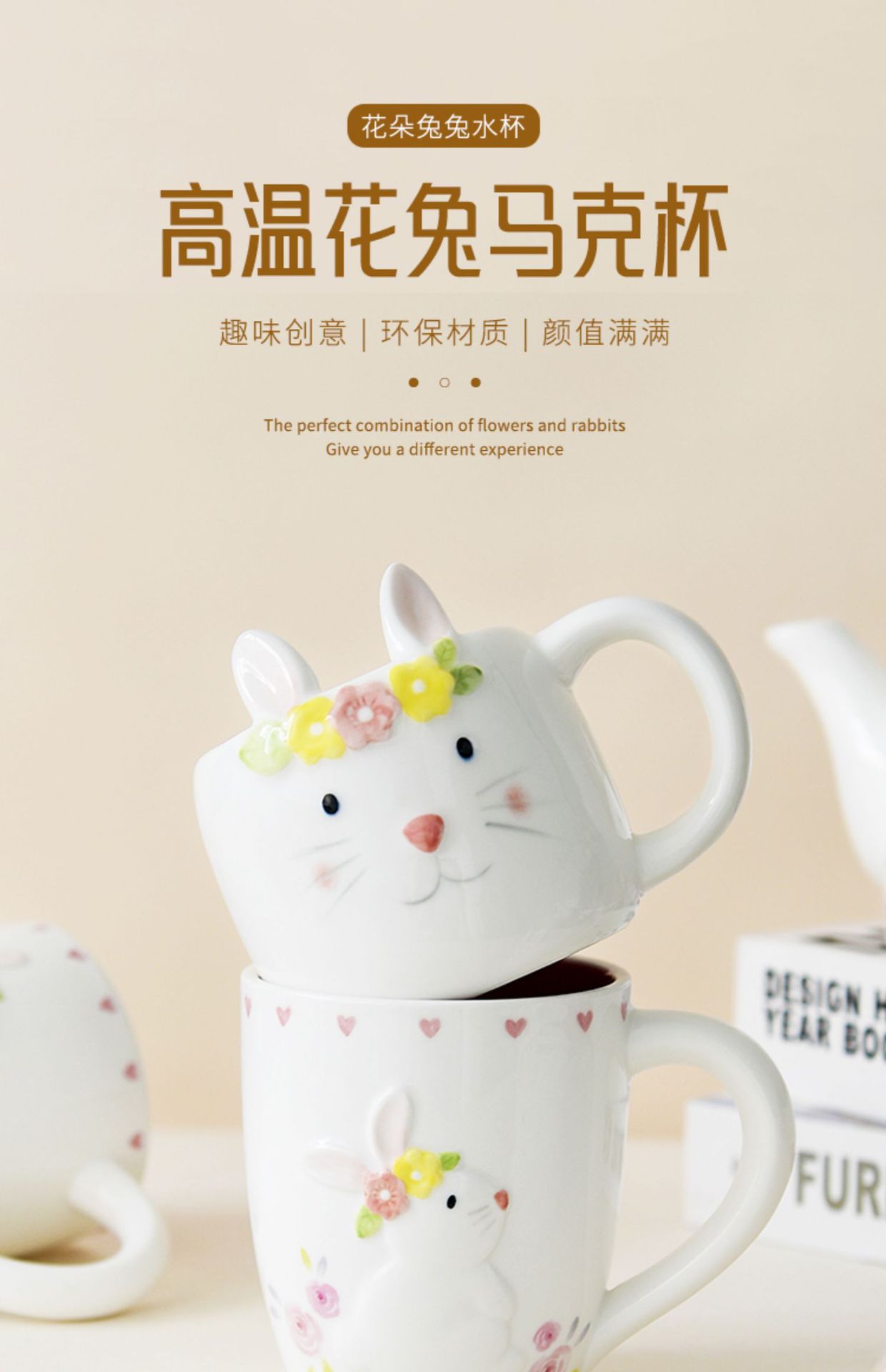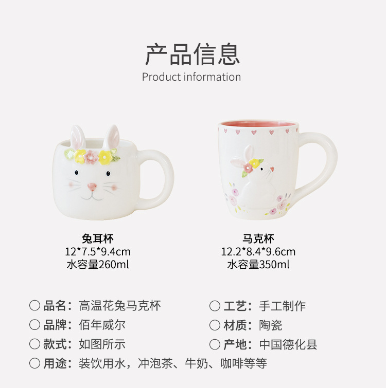 | Color | Conejo con flores trituradas - taza de orejas de conejo W202624, conejo con flores trituradas - taza W202609-1 |