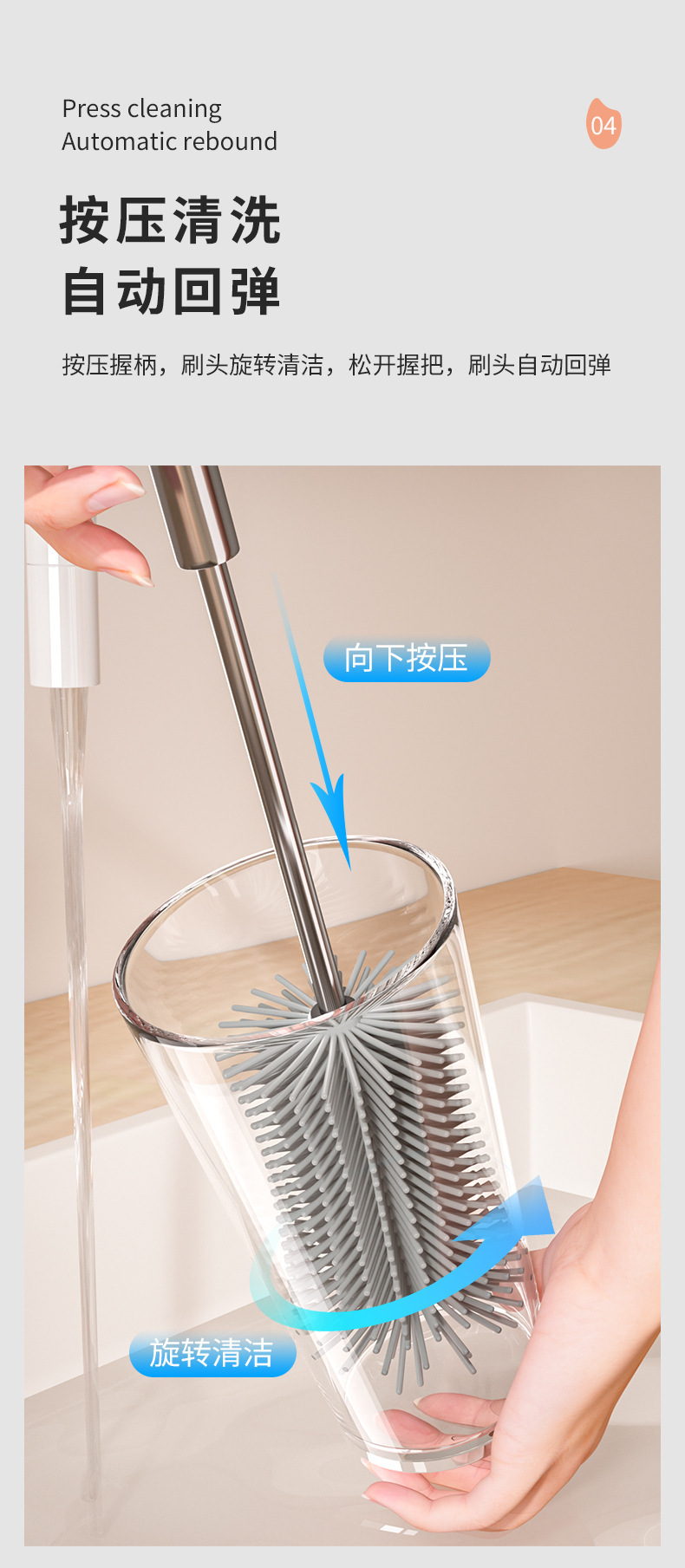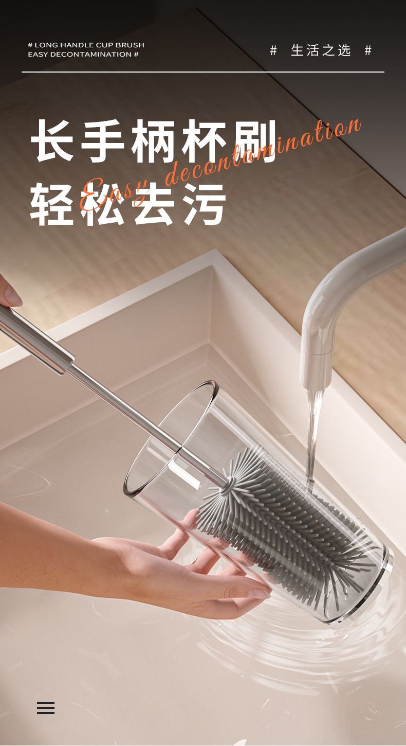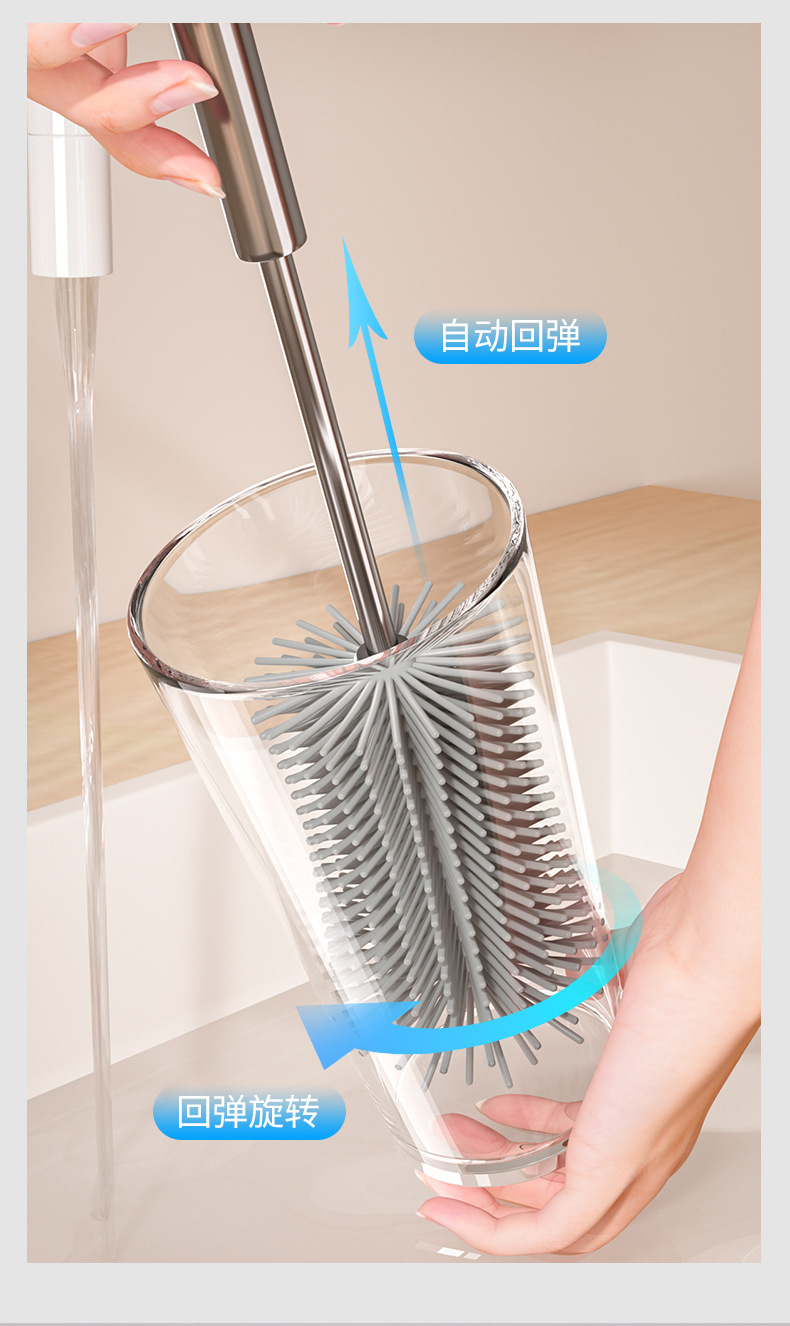 cepillo de taza de mango largo de prensa rotativa multifuncional de silicona desinfección artefacto de lavado de taza de agua cepillo de limpieza especial para botellas de leche