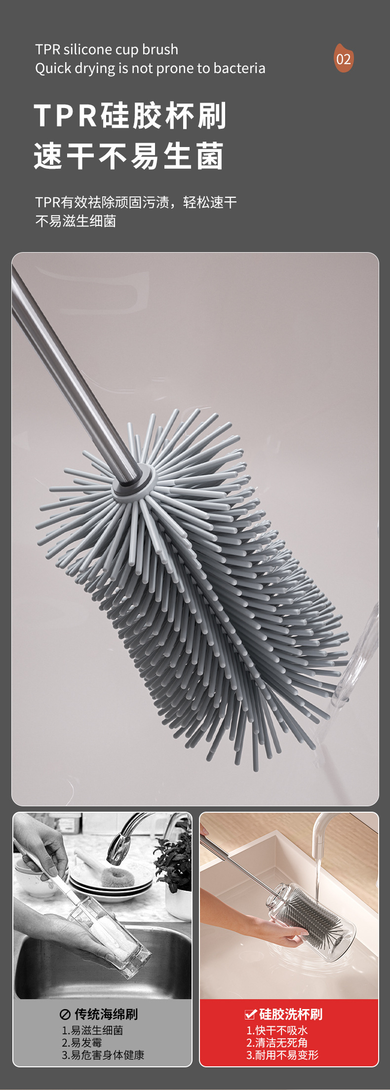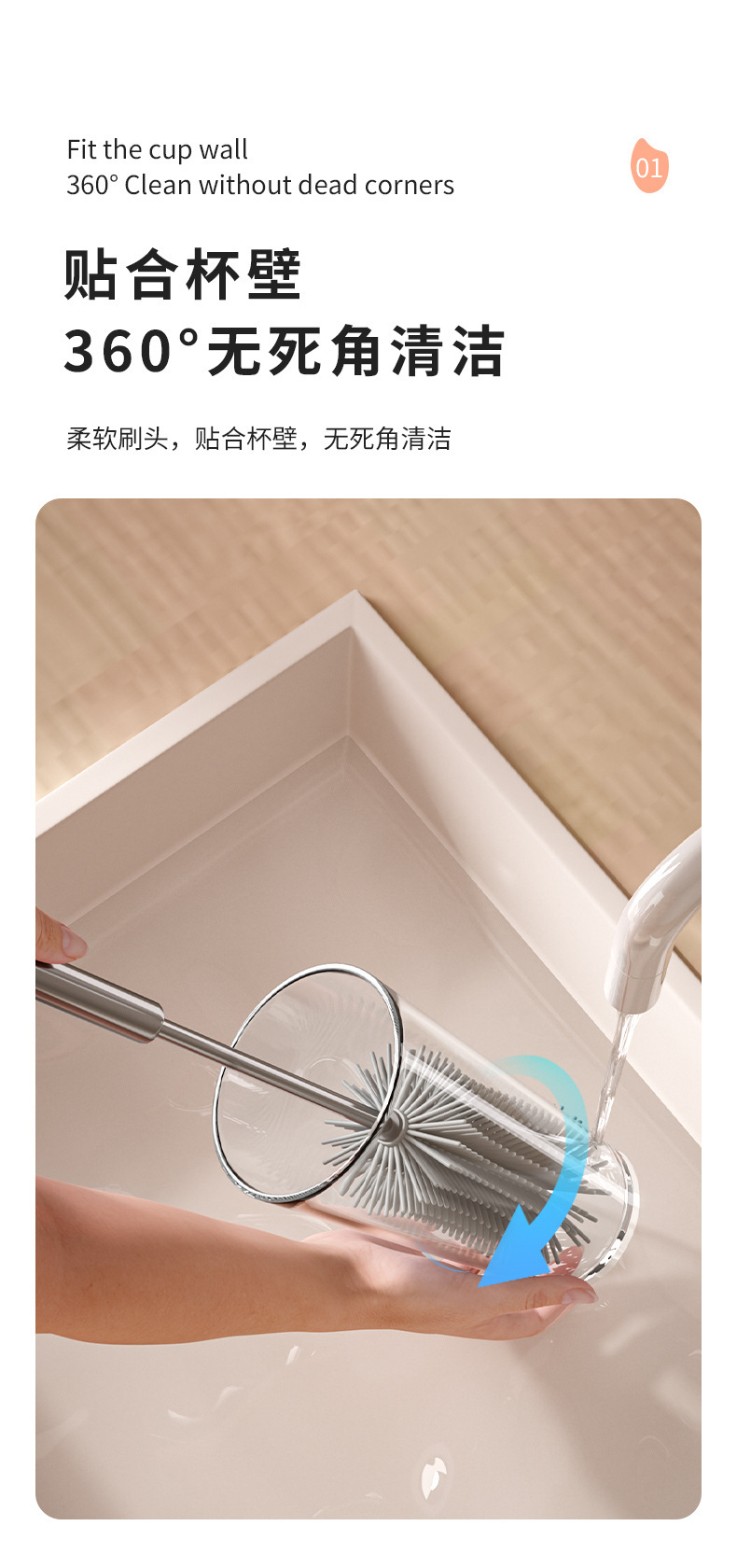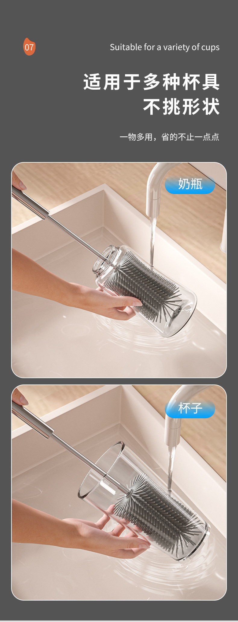 cepillo de taza de mango largo de prensa rotativa multifuncional de silicona desinfección artefacto de lavado de taza de agua cepillo de limpieza especial para botellas de leche