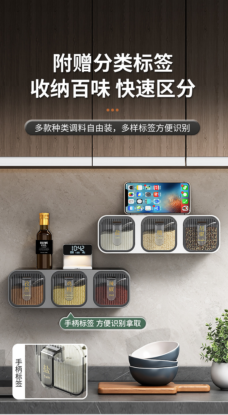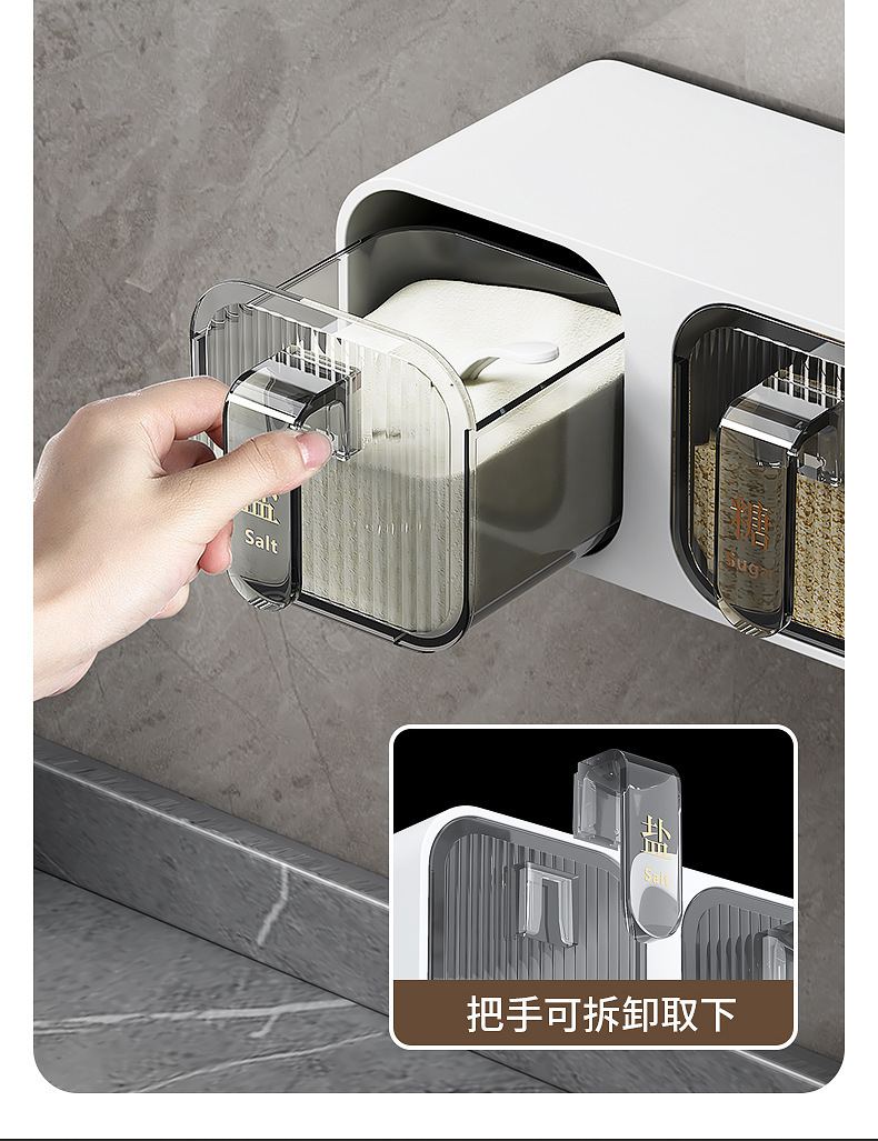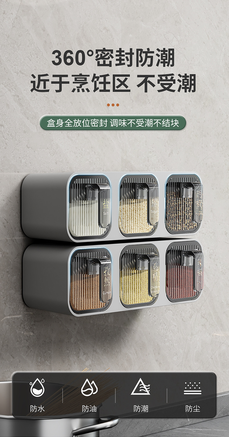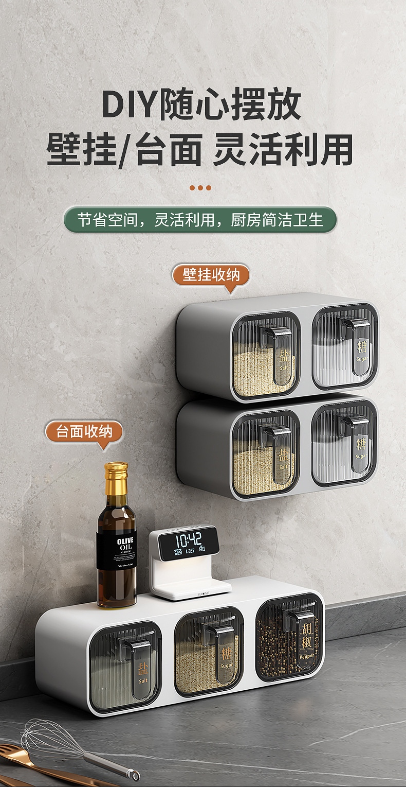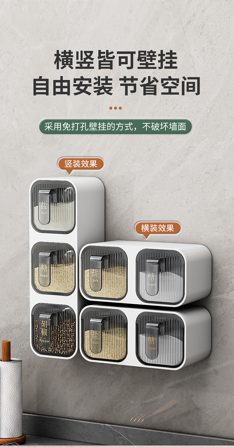 Caja de condimentos, estante de almacenamiento de cocina para el hogar, sal sin agujeros, MSG, tanque de condimento, integración de múltiples compartimentos