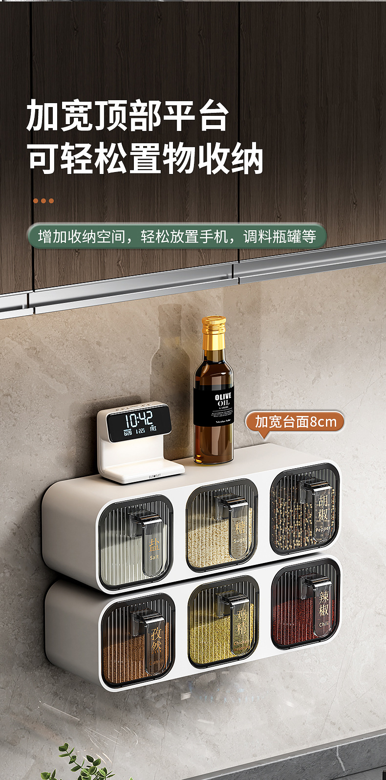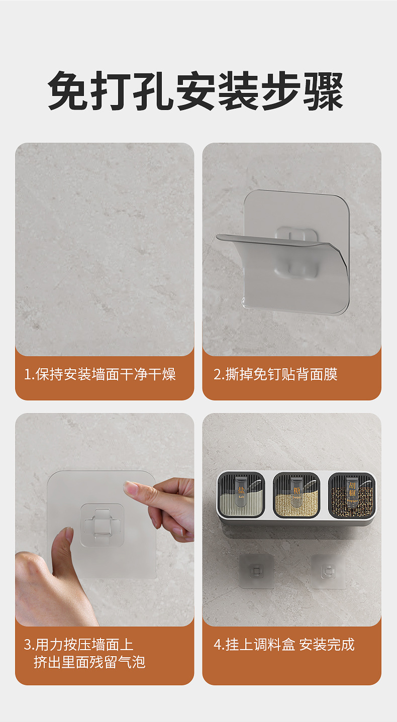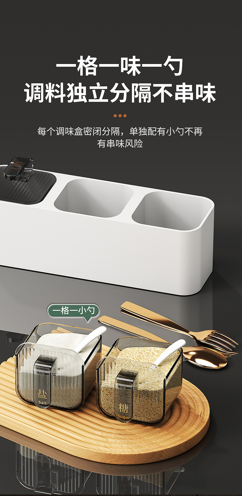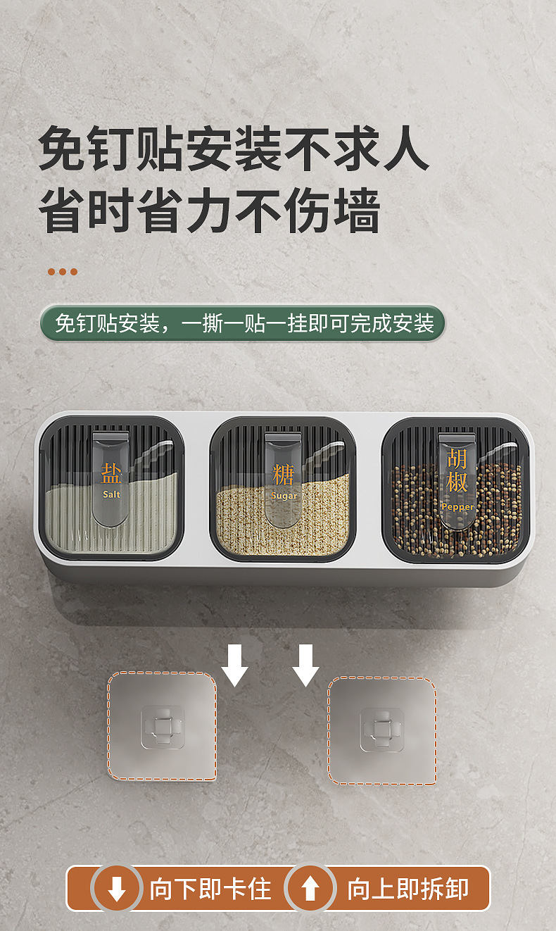 Caja de condimentos, estante de almacenamiento de cocina para el hogar, sal sin agujeros, MSG, tanque de condimento, integración de múltiples compartimentos