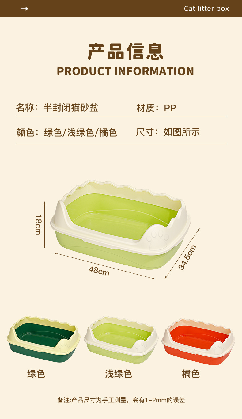 | Color | Naranja [super] + pala, verde [super] + pala, azul [super] + pala, arena de gato [color aleatorio] |