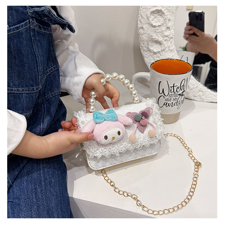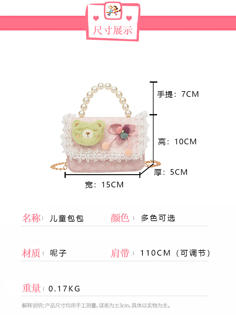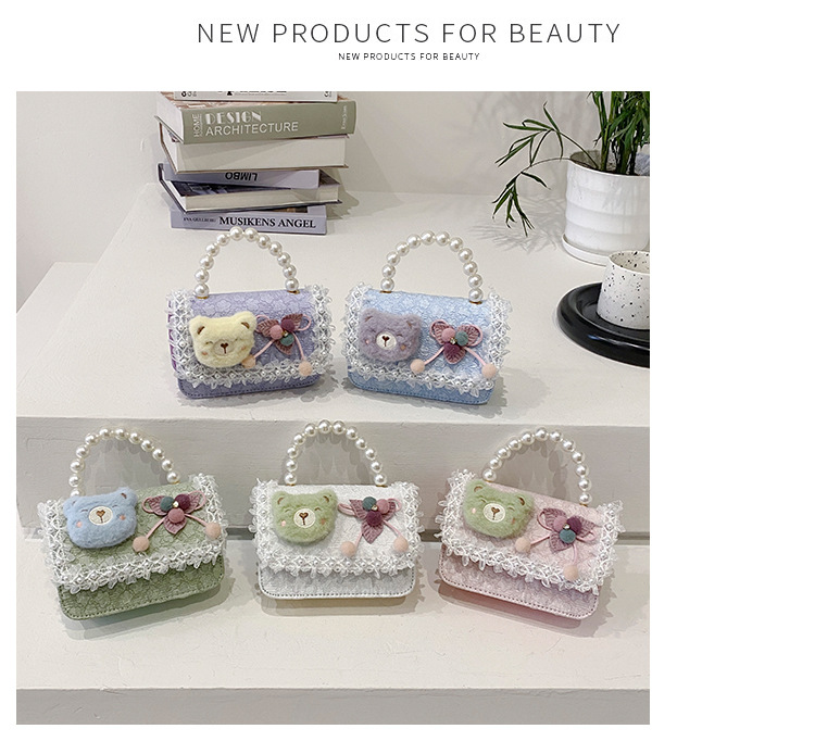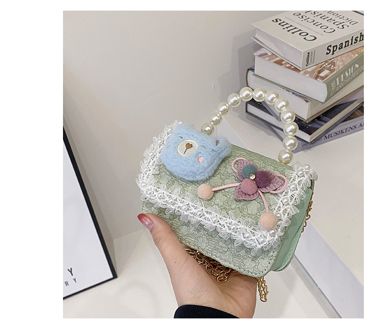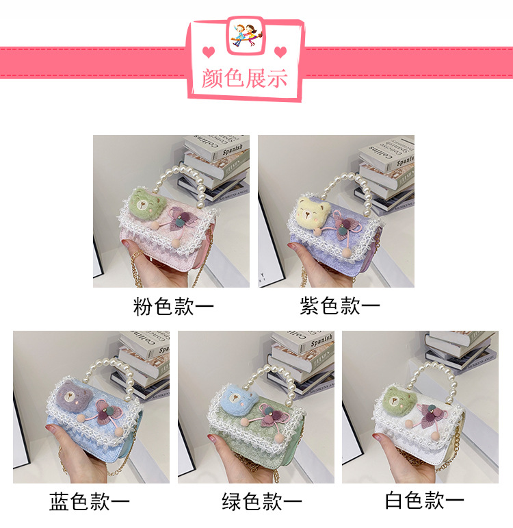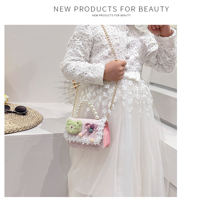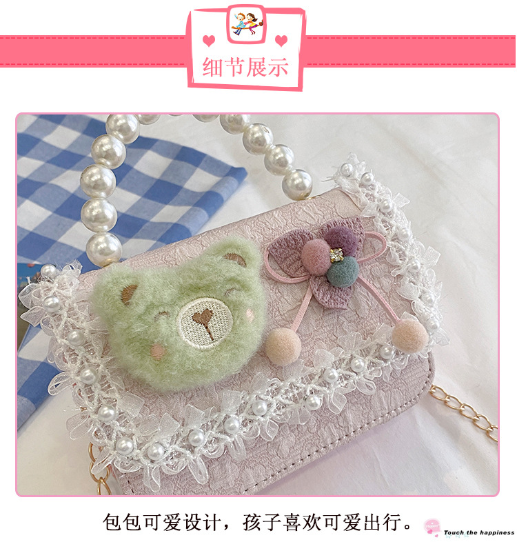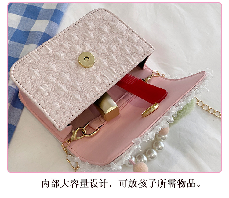Bolsos infantiles, bolsos de moda princesa de perlas, bolsos de cambio de chicas lindas, bolsos de hombro de encaje