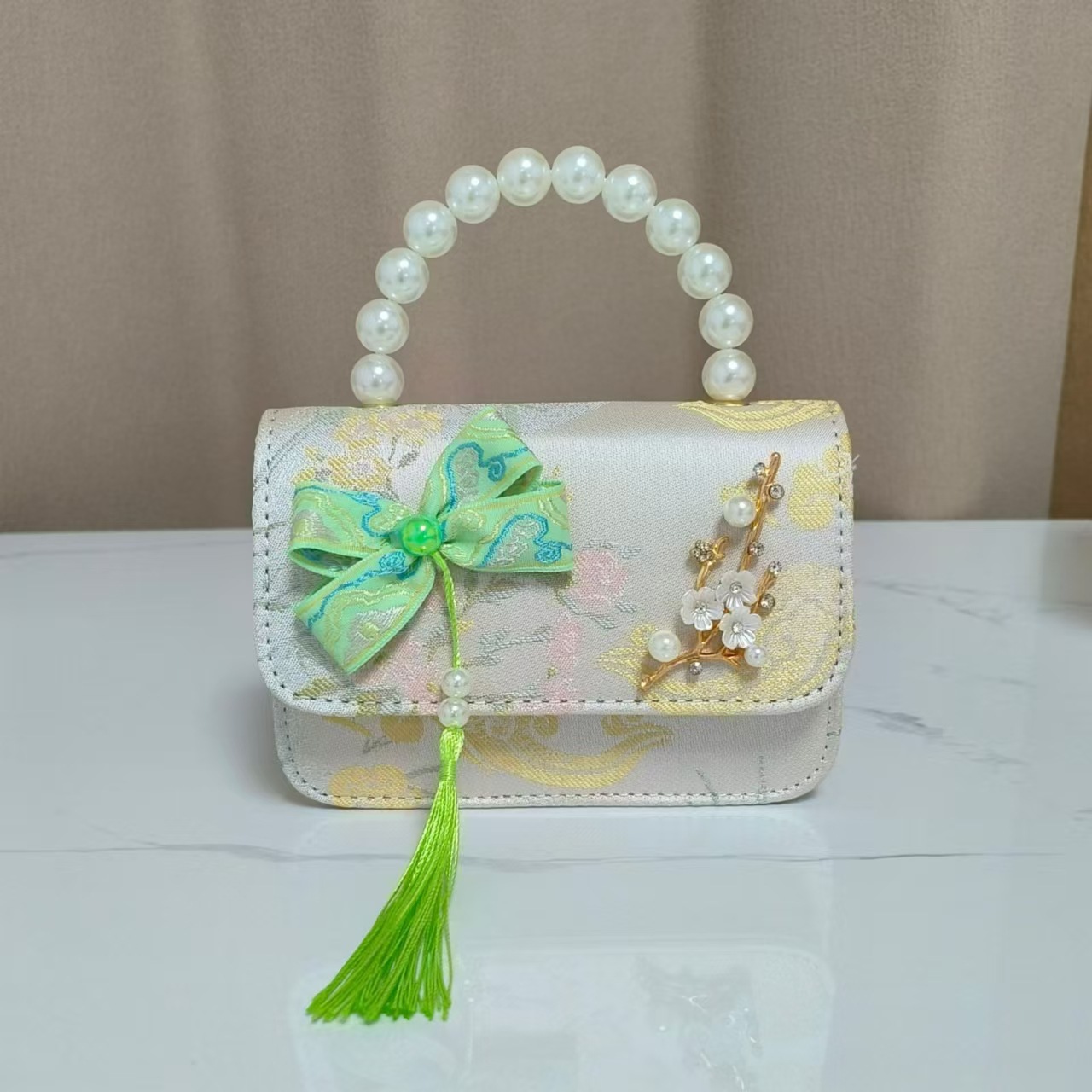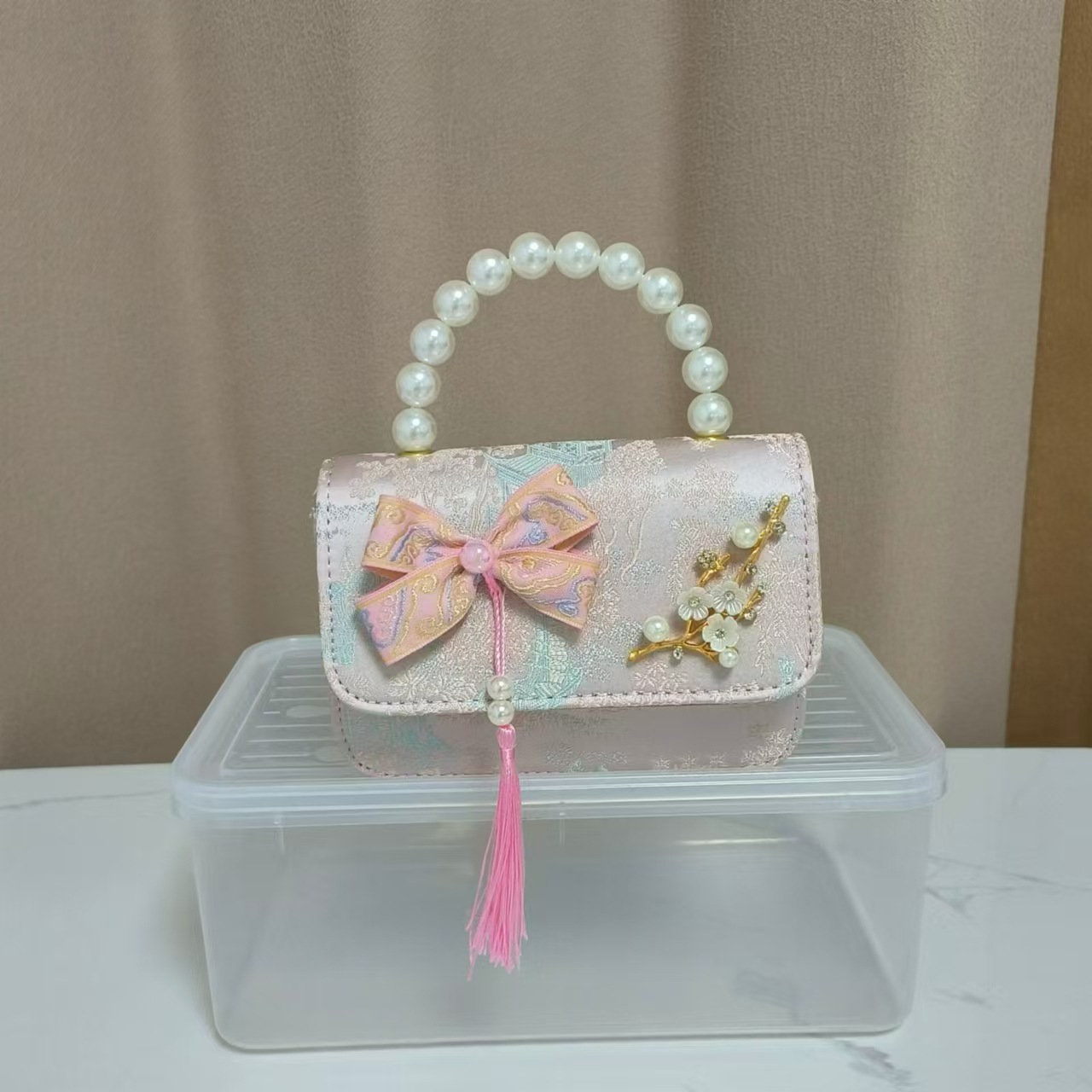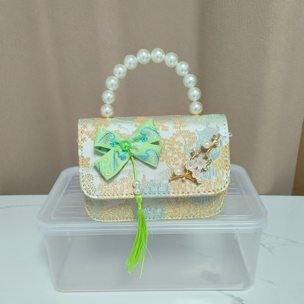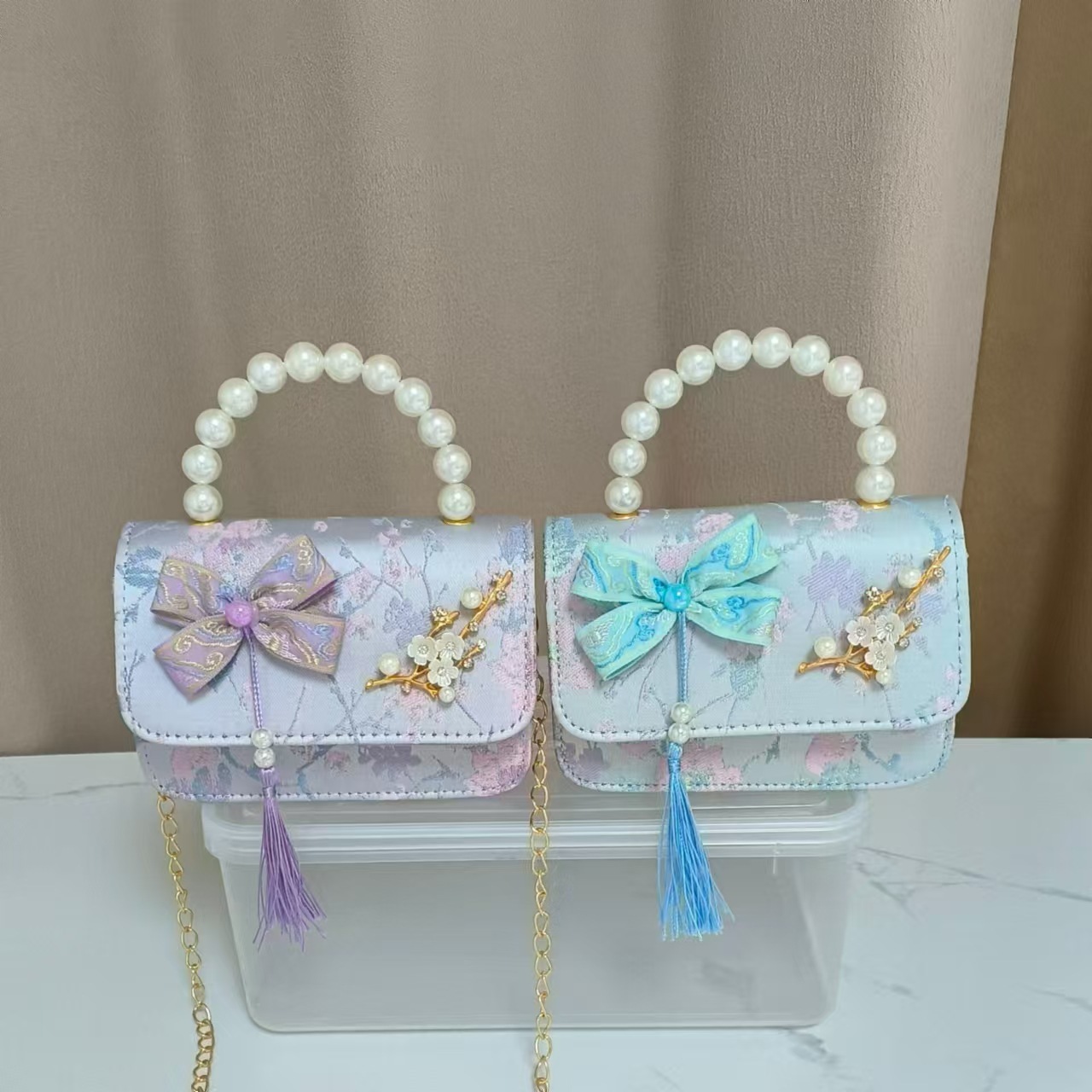 蝴蝶结国风公主包唐装配饰包链条珍珠手提包六一儿童节斜挎包方包