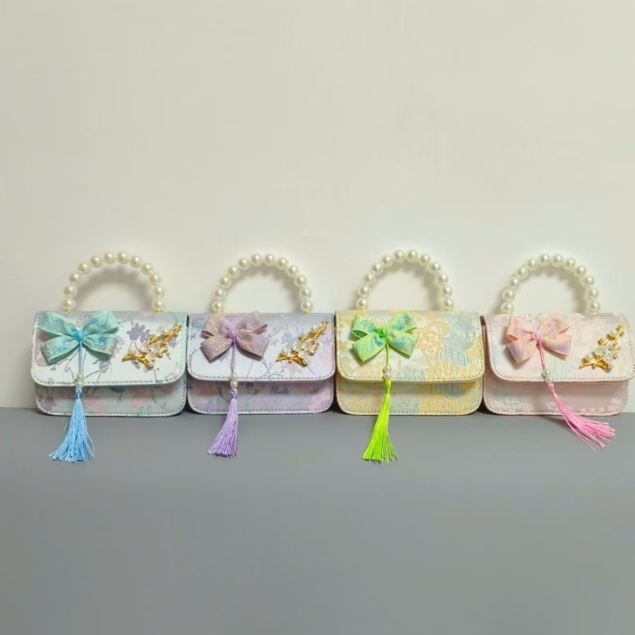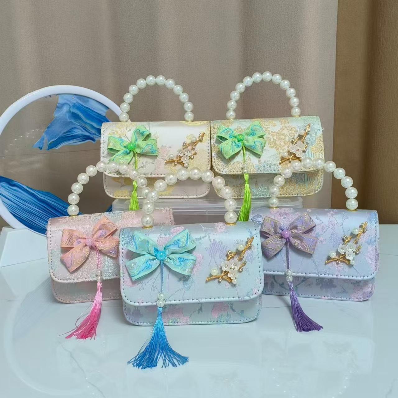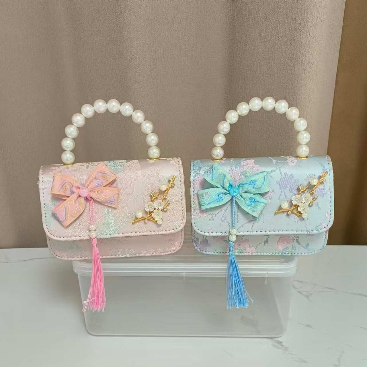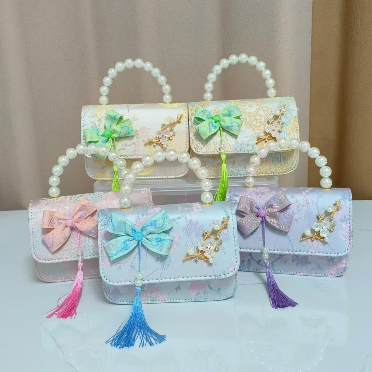 蝴蝶结国风公主包唐装配饰包链条珍珠手提包六一儿童节斜挎包方包