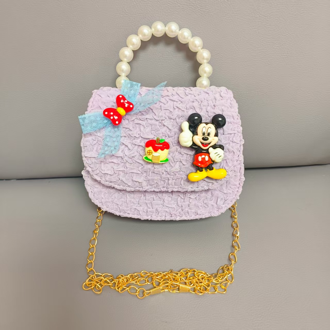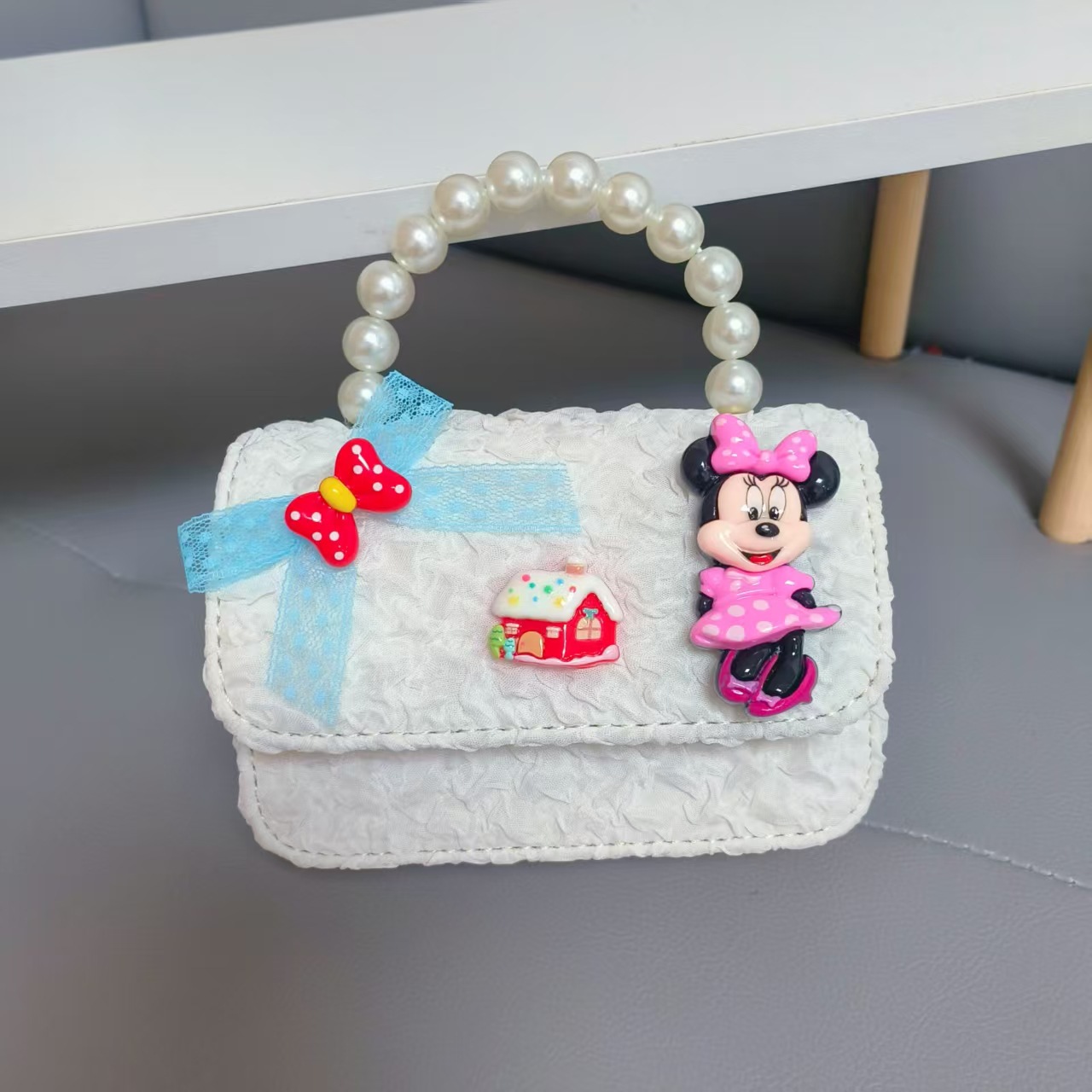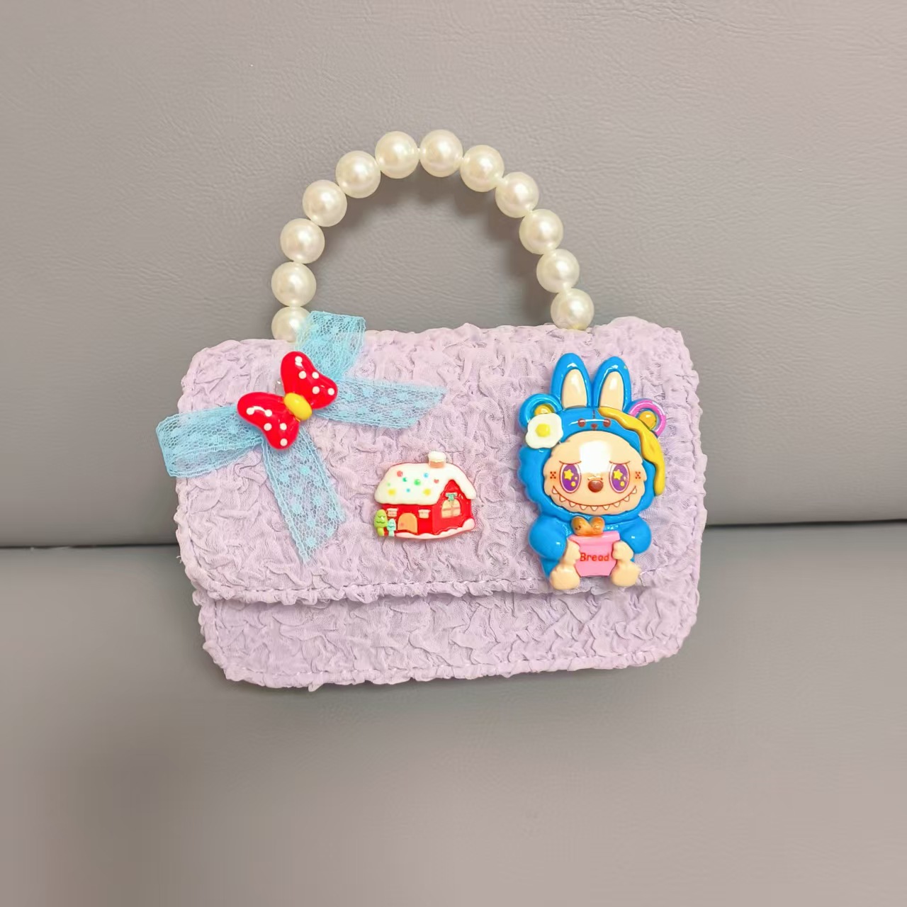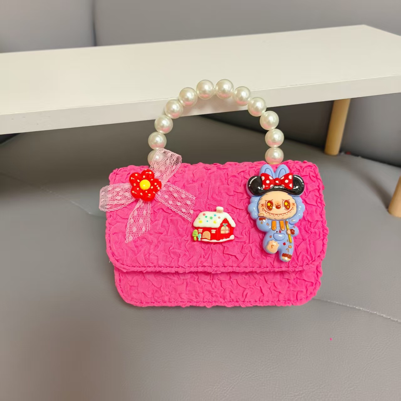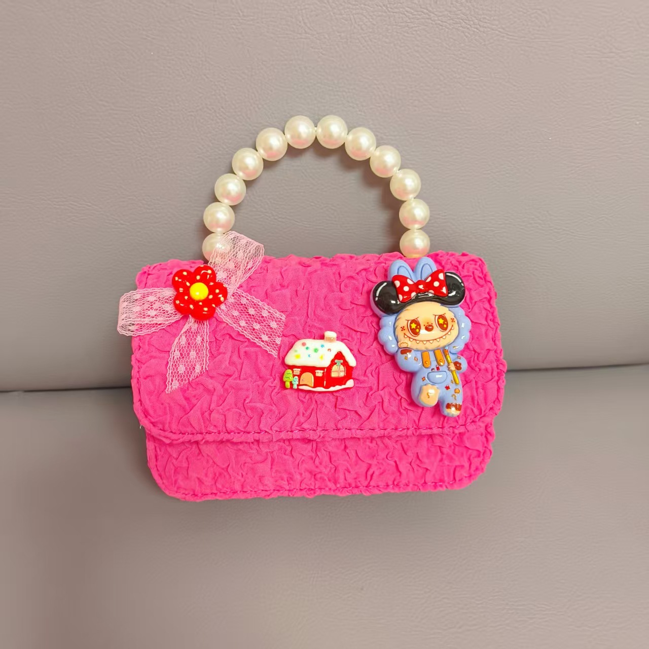 Bolso de perlas de arco de dibujos animados de Año Nuevo de chicas bolso de Año Nuevo de cadenas de viento fragante bolso cuadrado bolso de cambio de niños