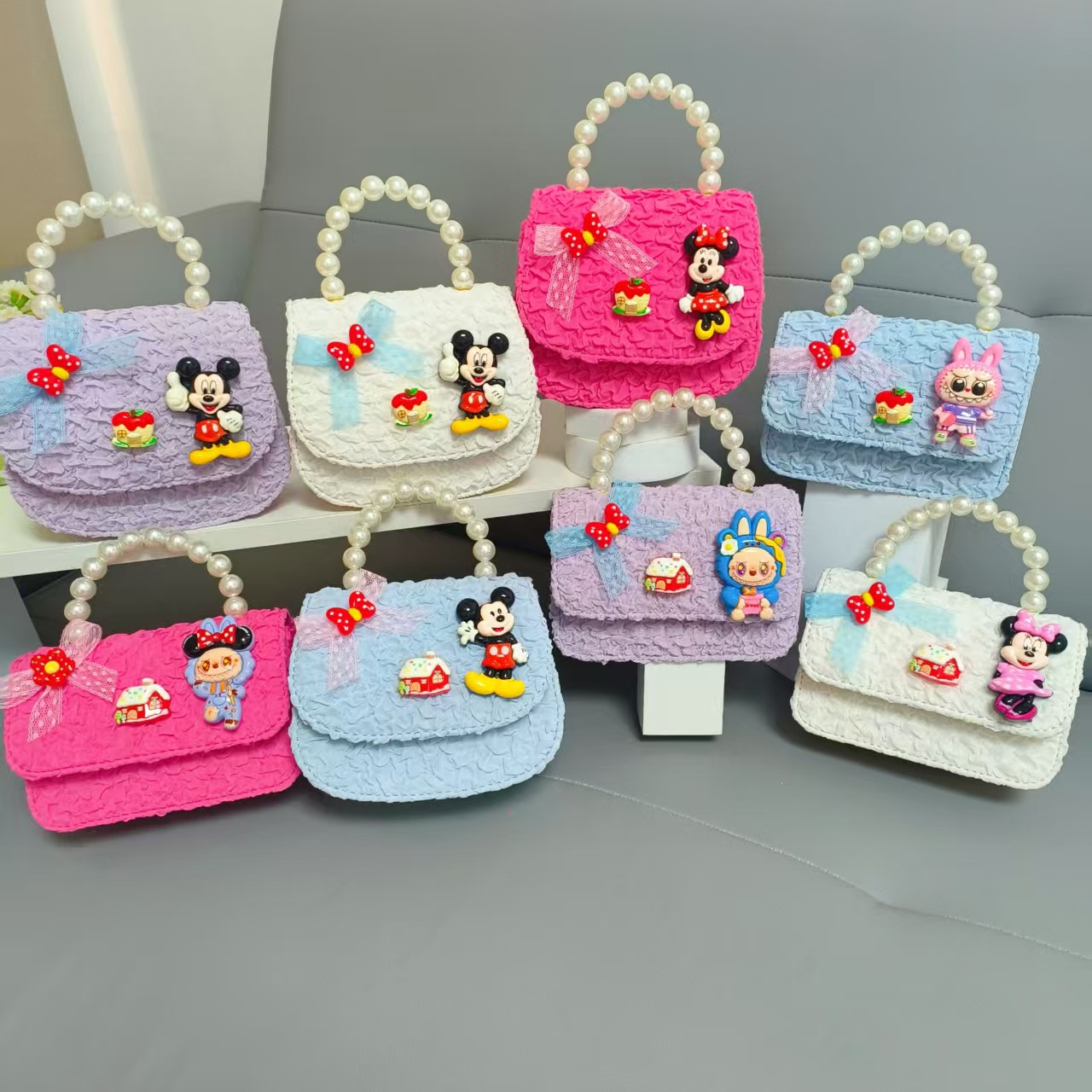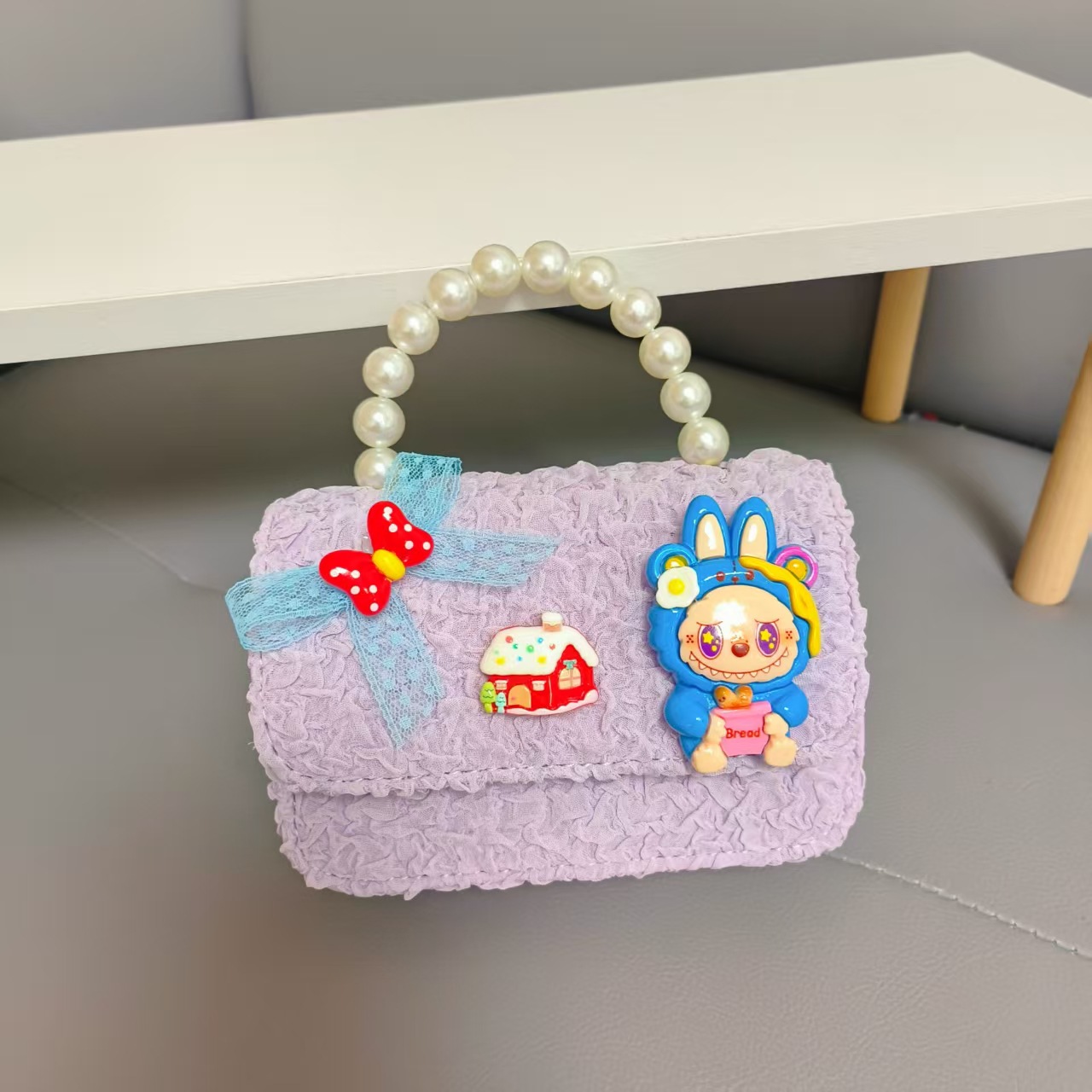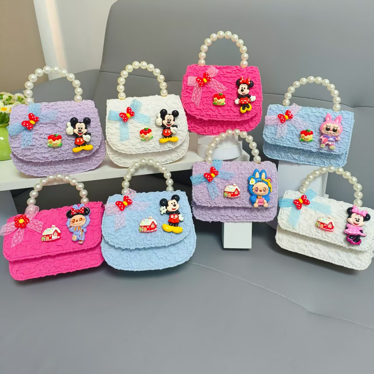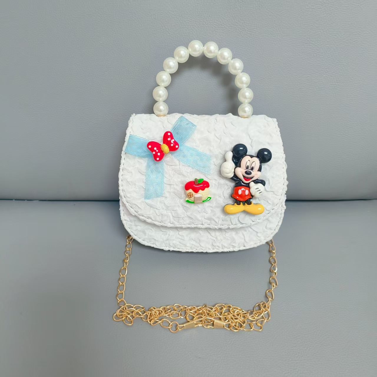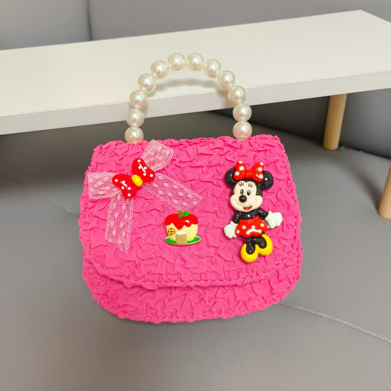 Bolso de perlas de arco de dibujos animados de Año Nuevo de chicas bolso de Año Nuevo de cadenas de viento fragante bolso cuadrado bolso de cambio de niños