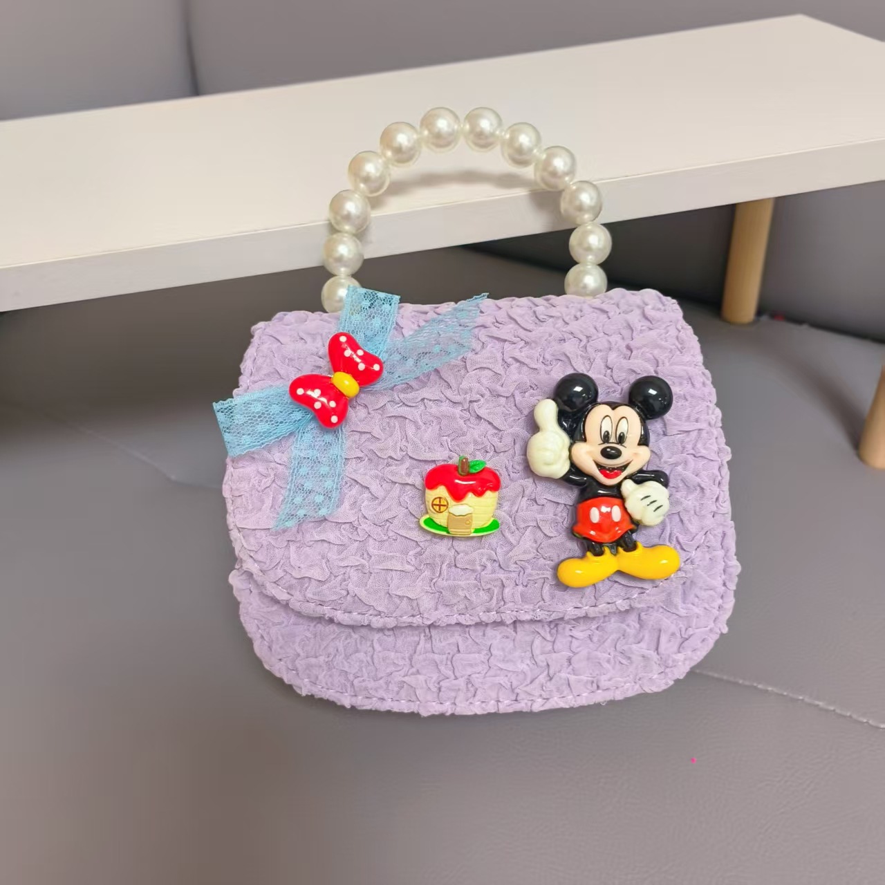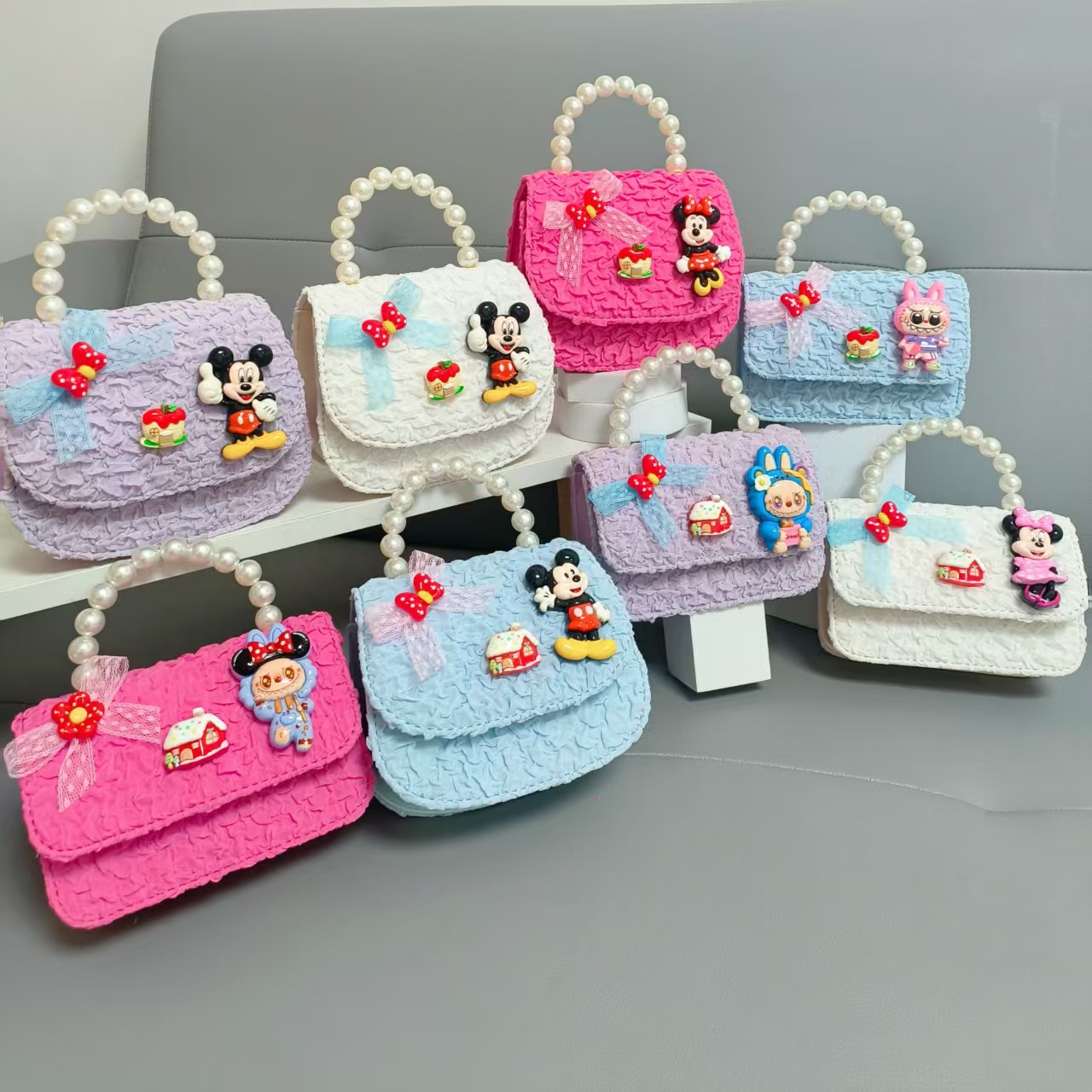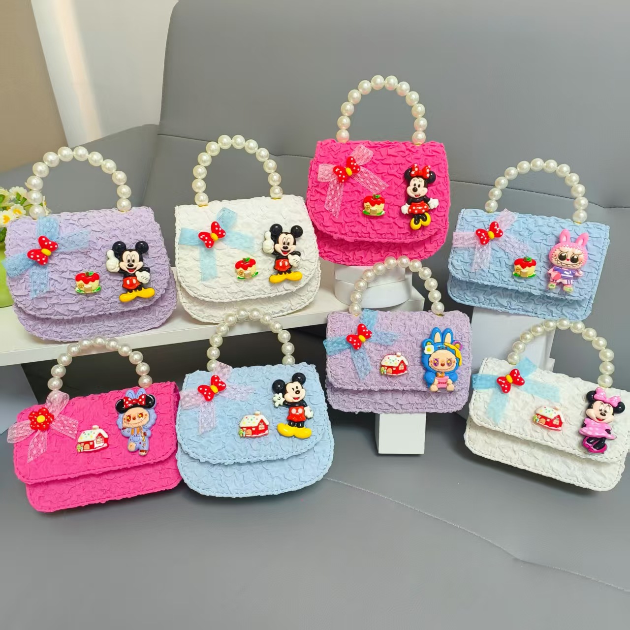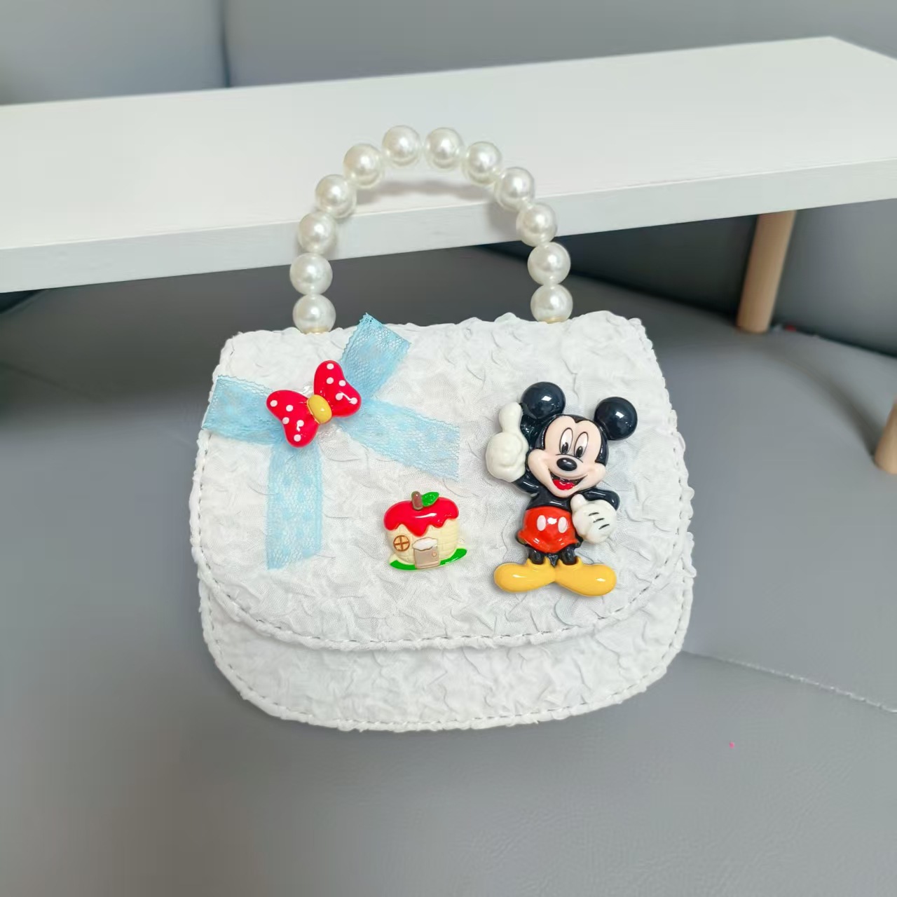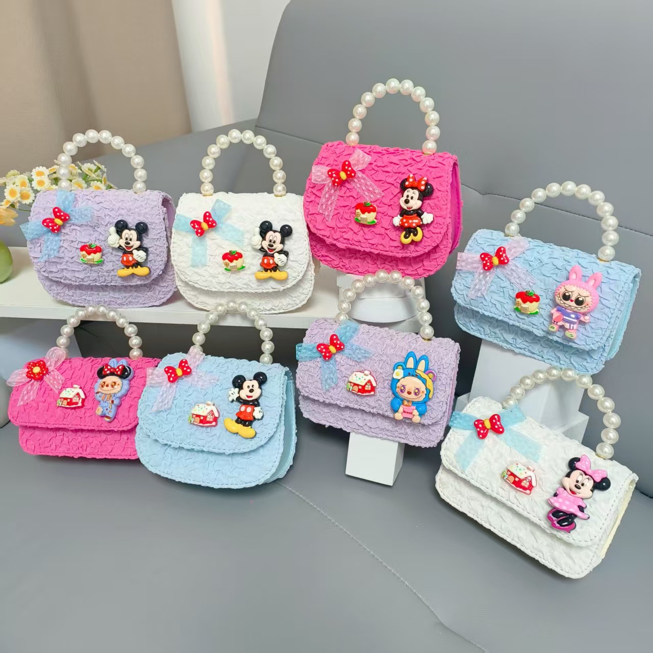 Bolso de perlas de arco de dibujos animados de Año Nuevo de chicas bolso de Año Nuevo de cadenas de viento fragante bolso cuadrado bolso de cambio de niños