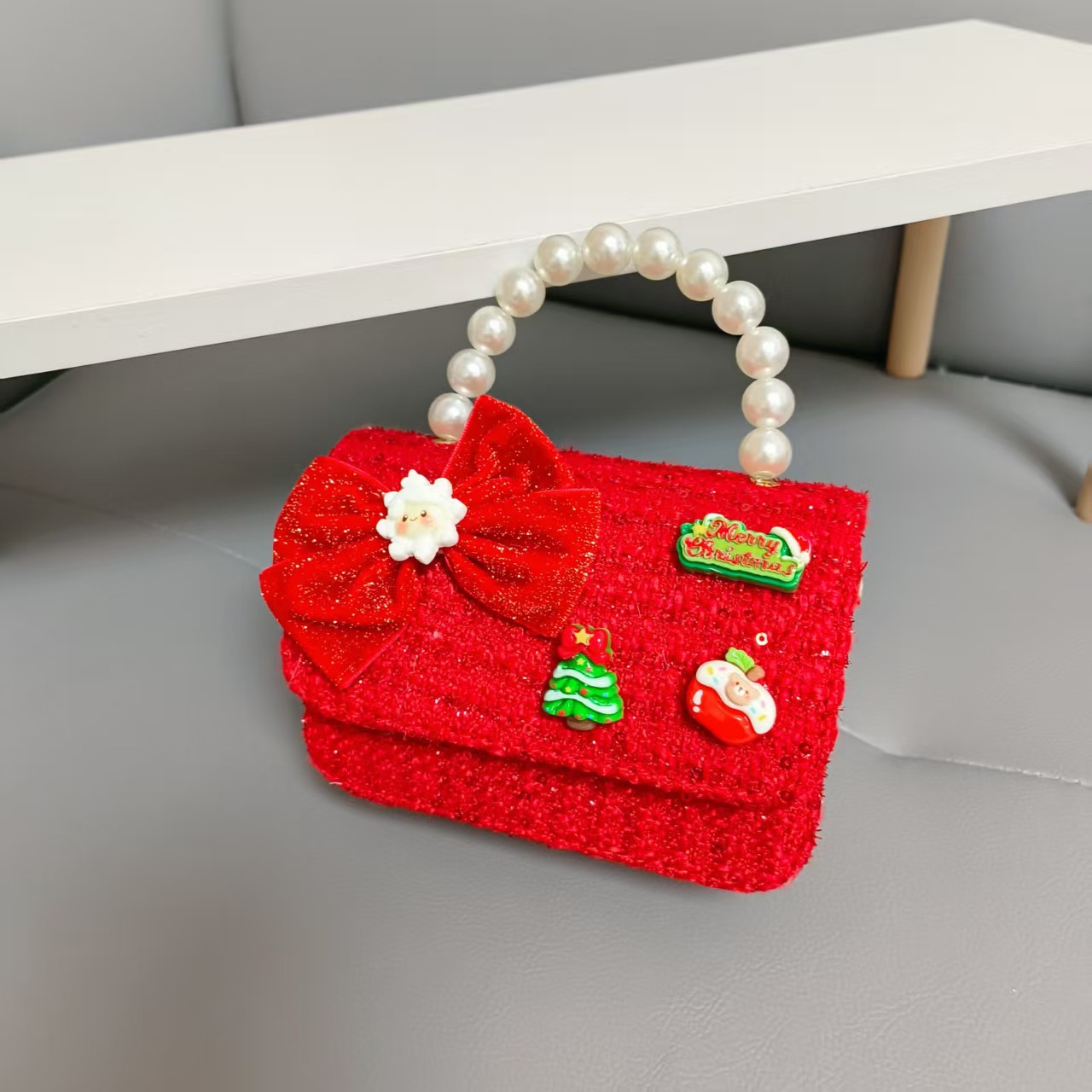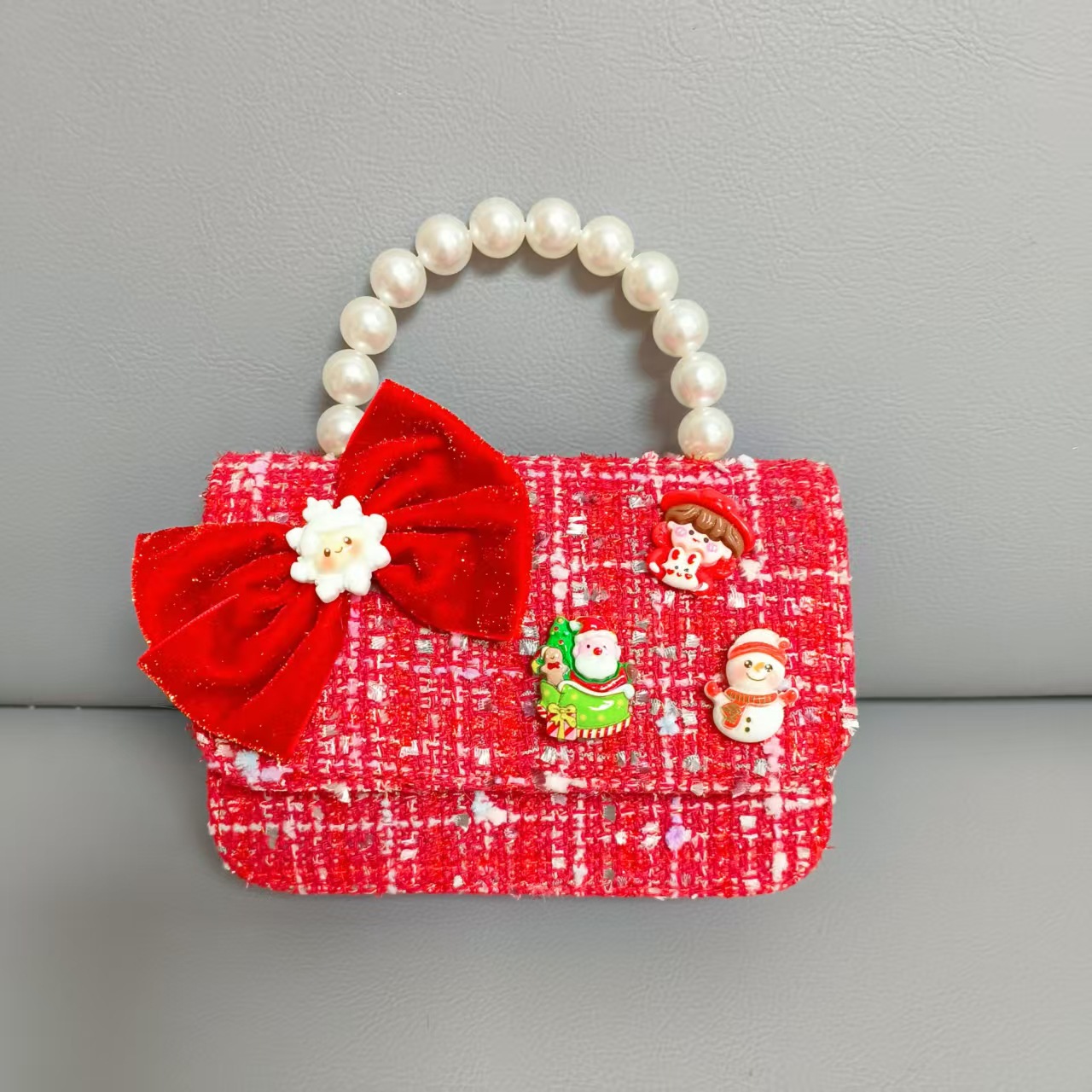 Cartera de Año Nuevo rojo arco de papá Noel bolso de perla pequeña cadena de viento fragante bolso de hombro