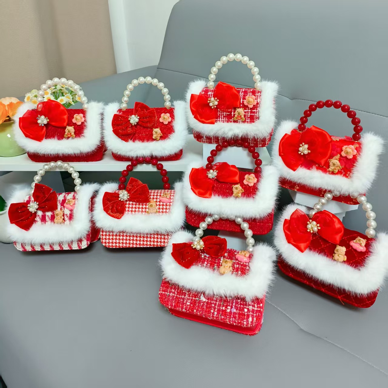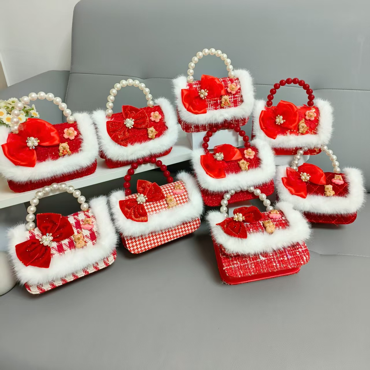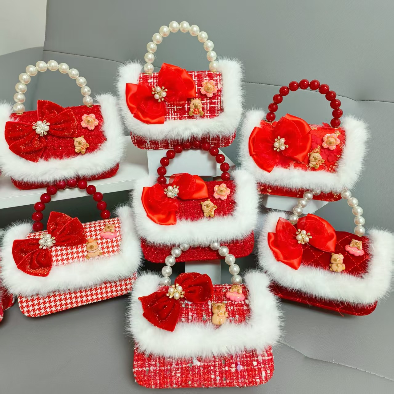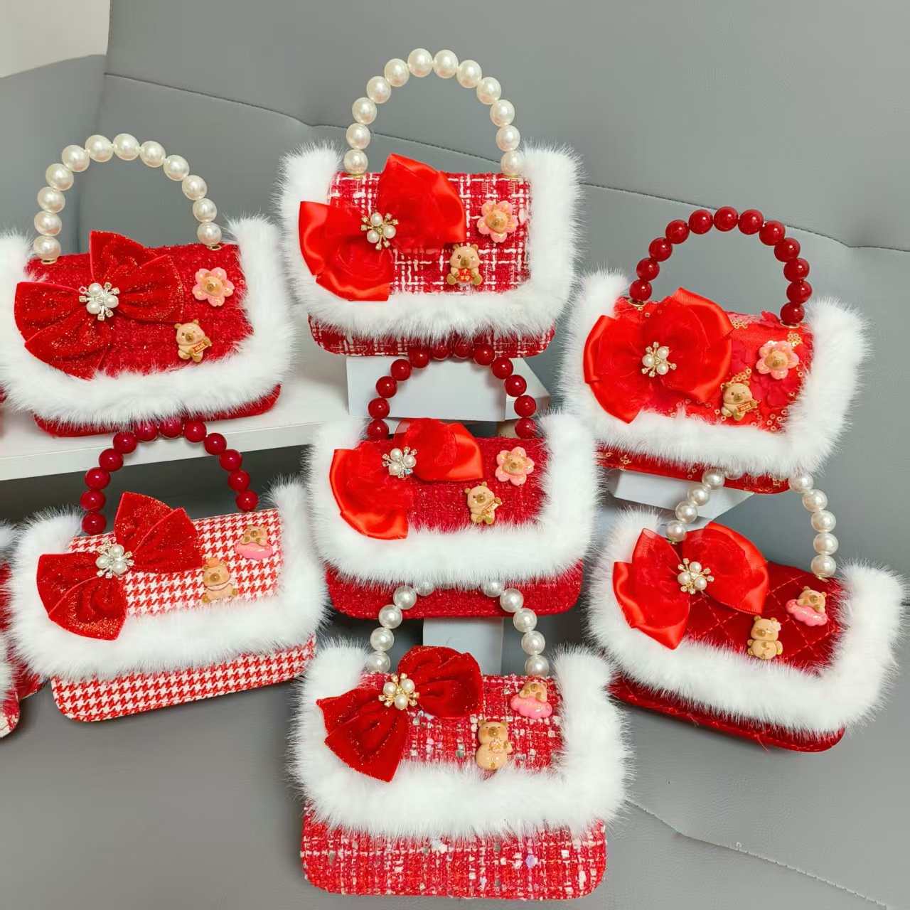 Bolso de la princesa portátil de perlas de Año Nuevo gran rojo para niños bolso de Año Nuevo bolso de chicas bolso de cadena pequeña bolsa de accesorios de viento fragante