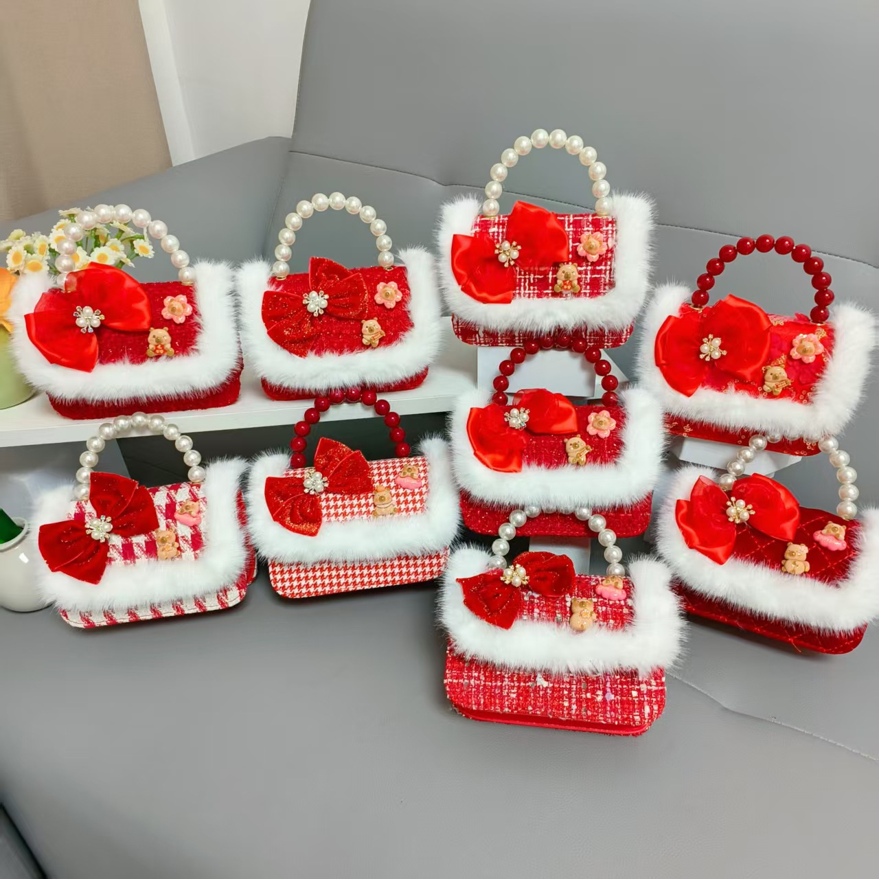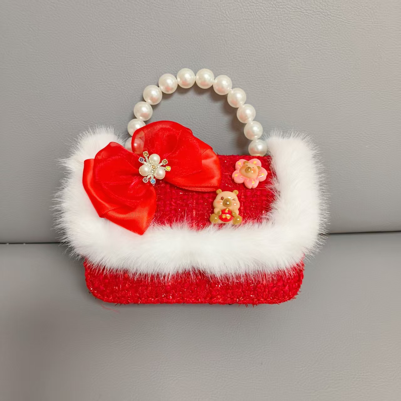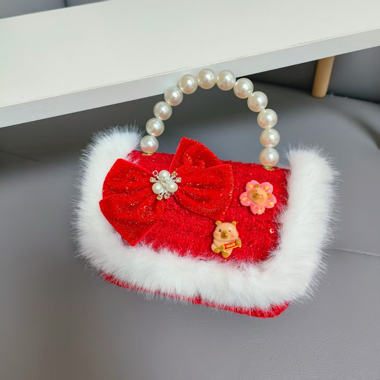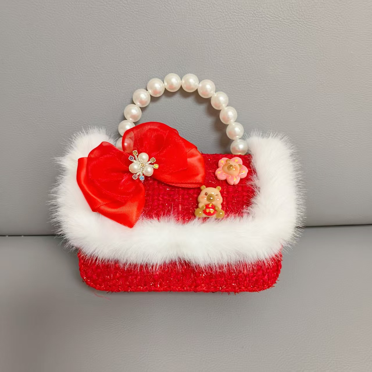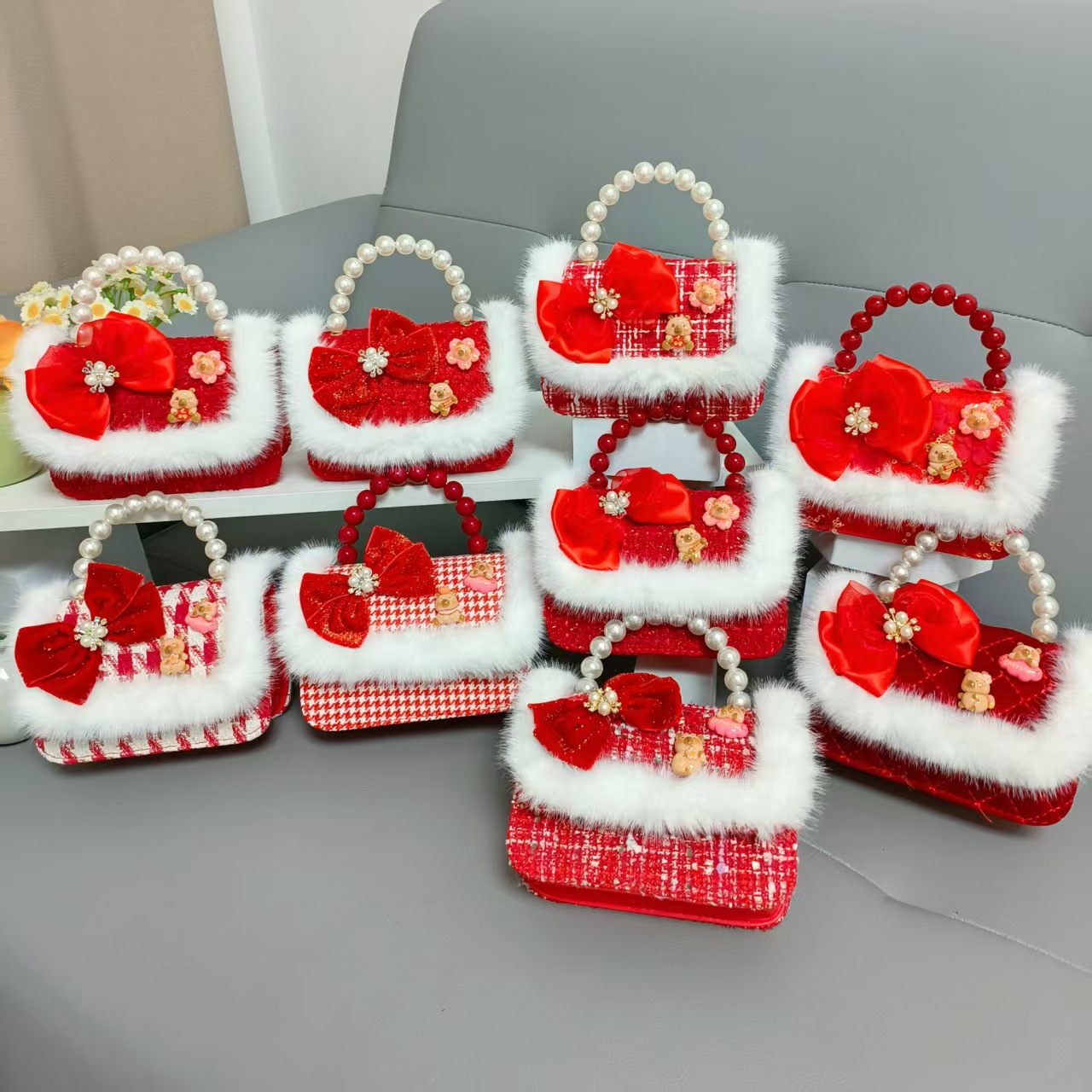 Bolso de la princesa portátil de perlas de Año Nuevo gran rojo para niños bolso de Año Nuevo bolso de chicas bolso de cadena pequeña bolsa de accesorios de viento fragante
