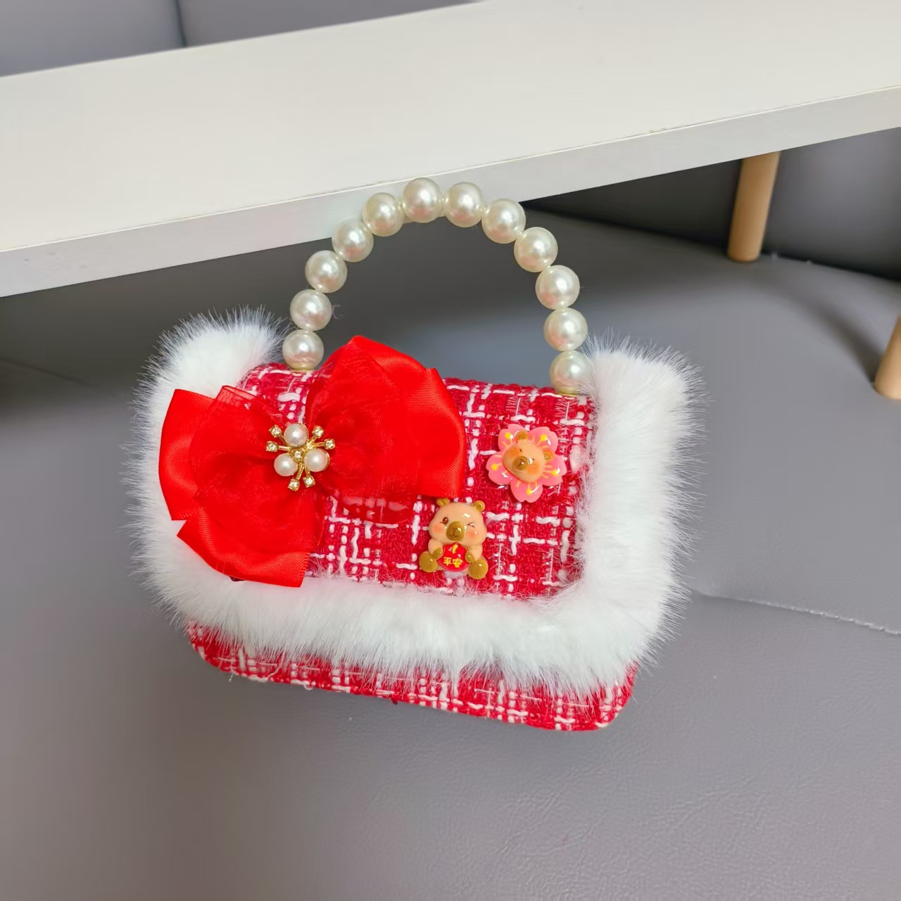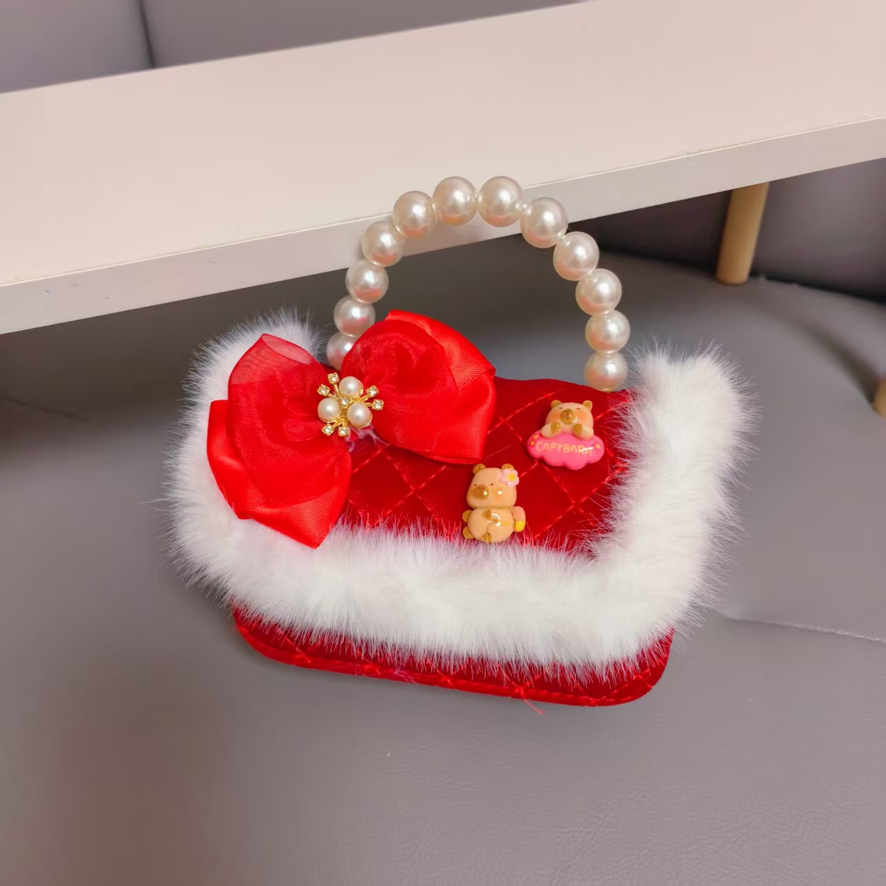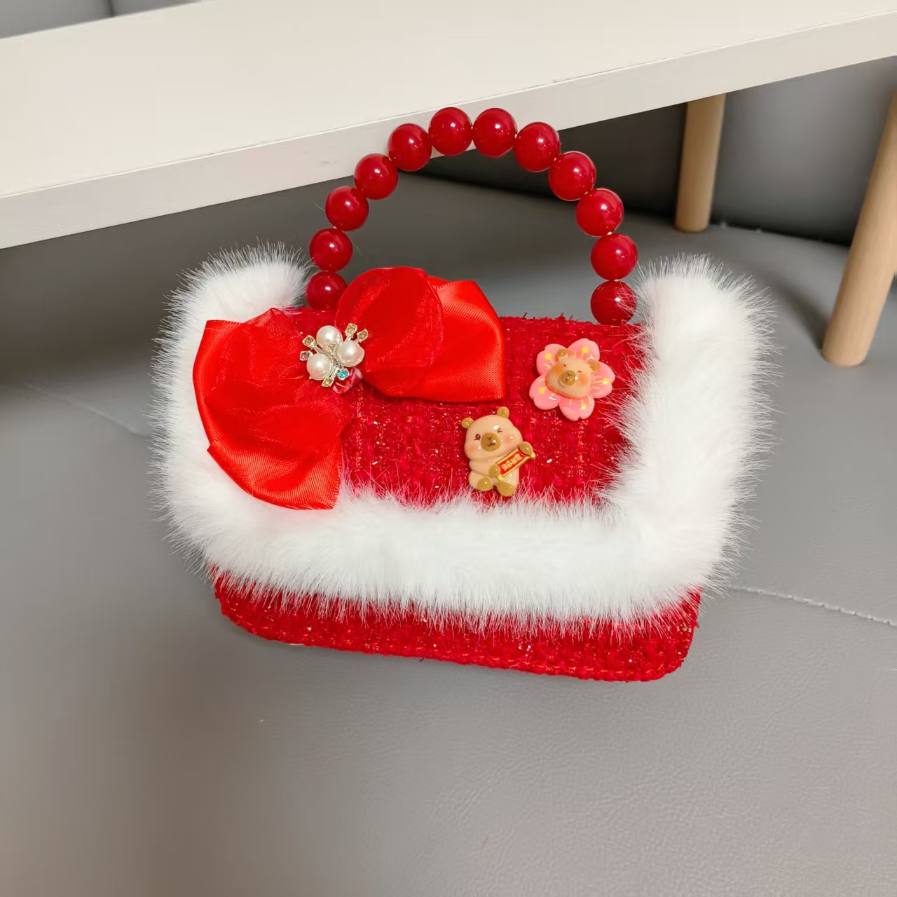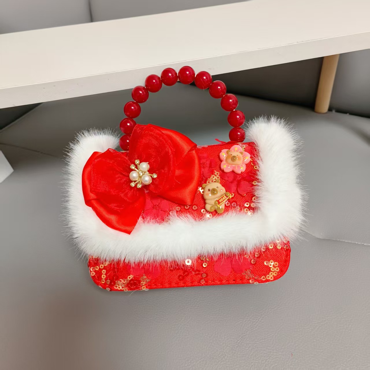 Bolso de la princesa portátil de perlas de Año Nuevo gran rojo para niños bolso de Año Nuevo bolso de chicas bolso de cadena pequeña bolsa de accesorios de viento fragante