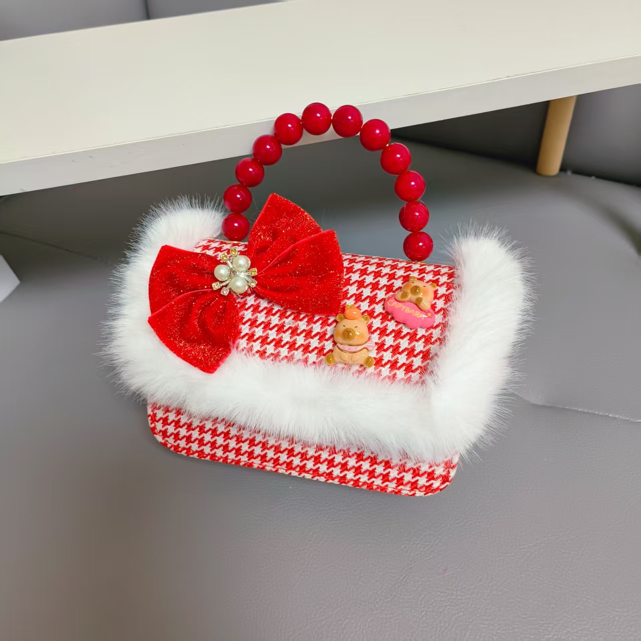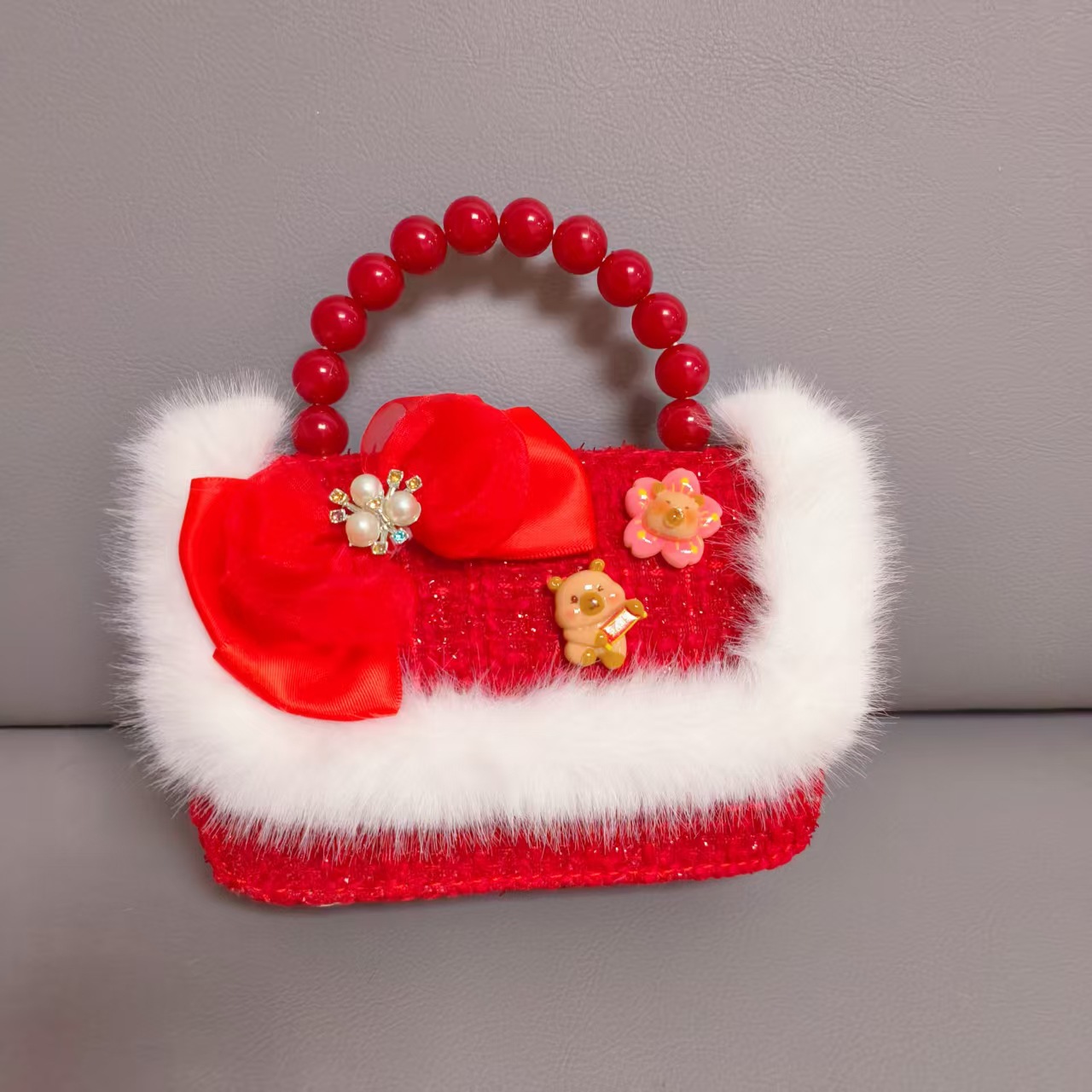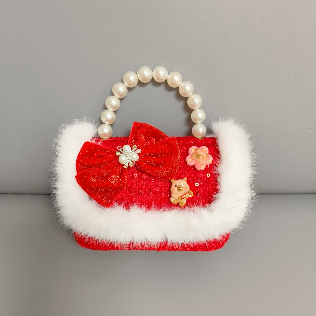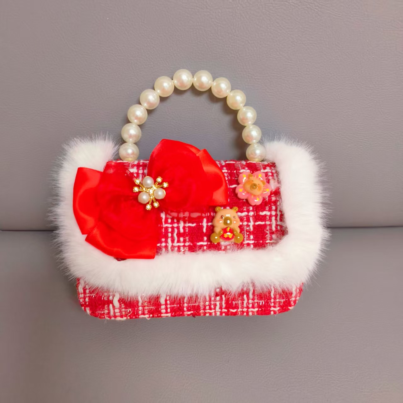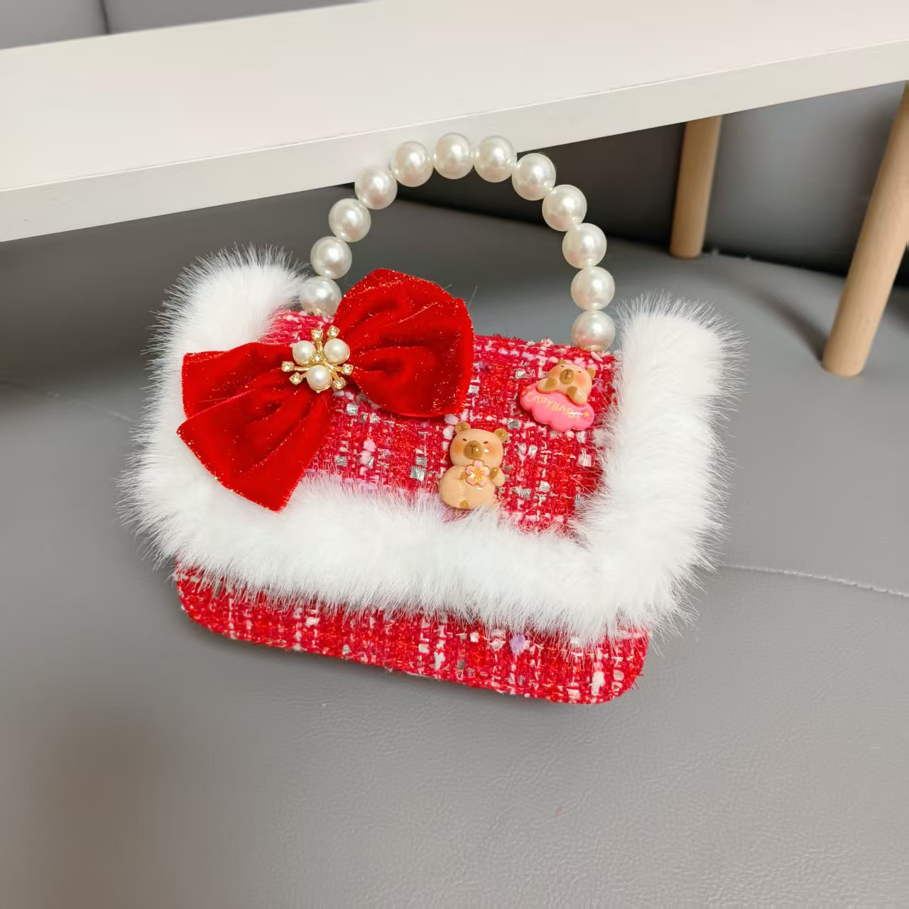Bolso de la princesa portátil de perlas de Año Nuevo gran rojo para niños bolso de Año Nuevo bolso de chicas bolso de cadena pequeña bolsa de accesorios de viento fragante