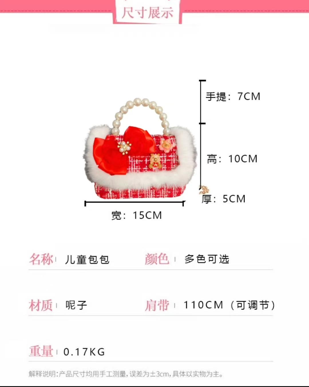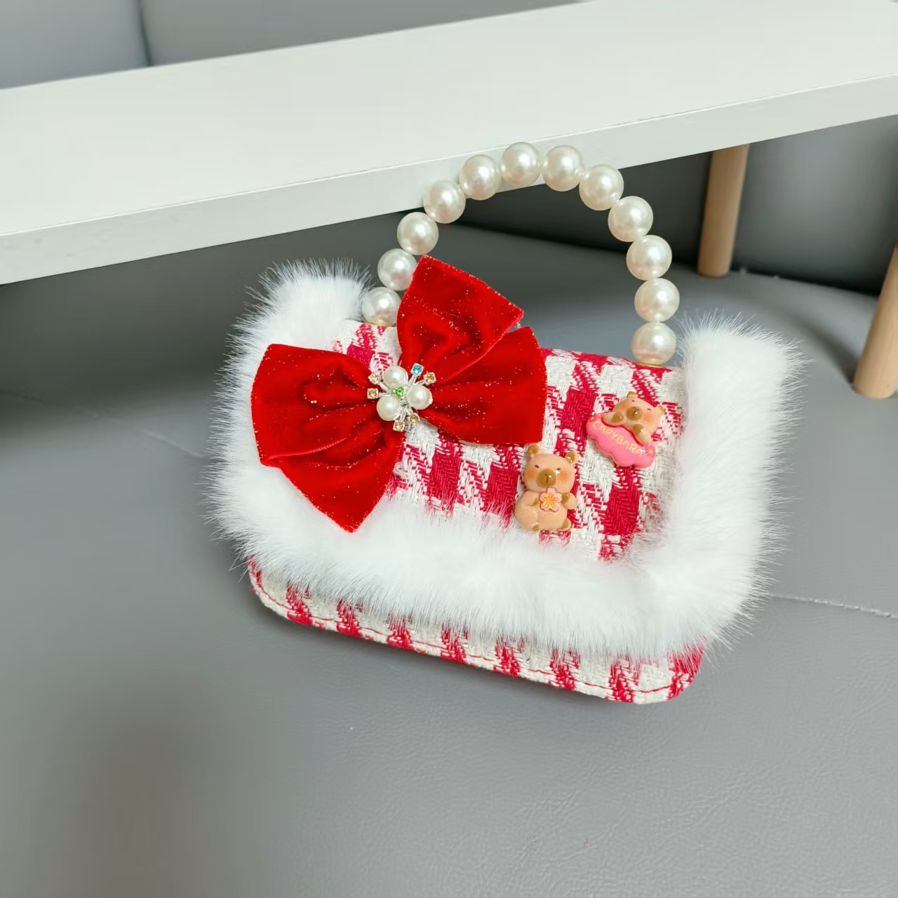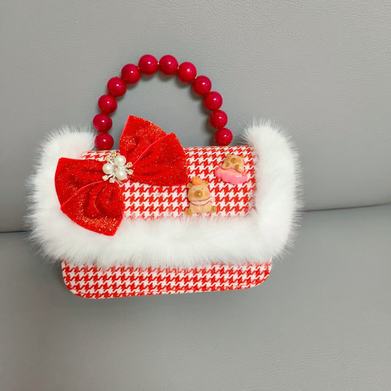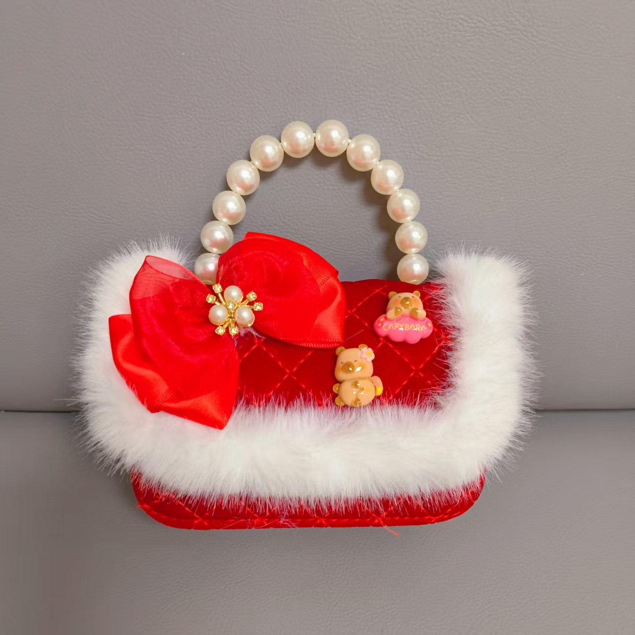 Bolso de la princesa portátil de perlas de Año Nuevo gran rojo para niños bolso de Año Nuevo bolso de chicas bolso de cadena pequeña bolsa de accesorios de viento fragante