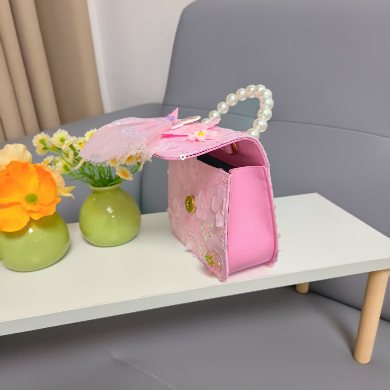 珍珠手提包公主链条包小女孩新年压岁钱包零钱配饰包小方包小香风