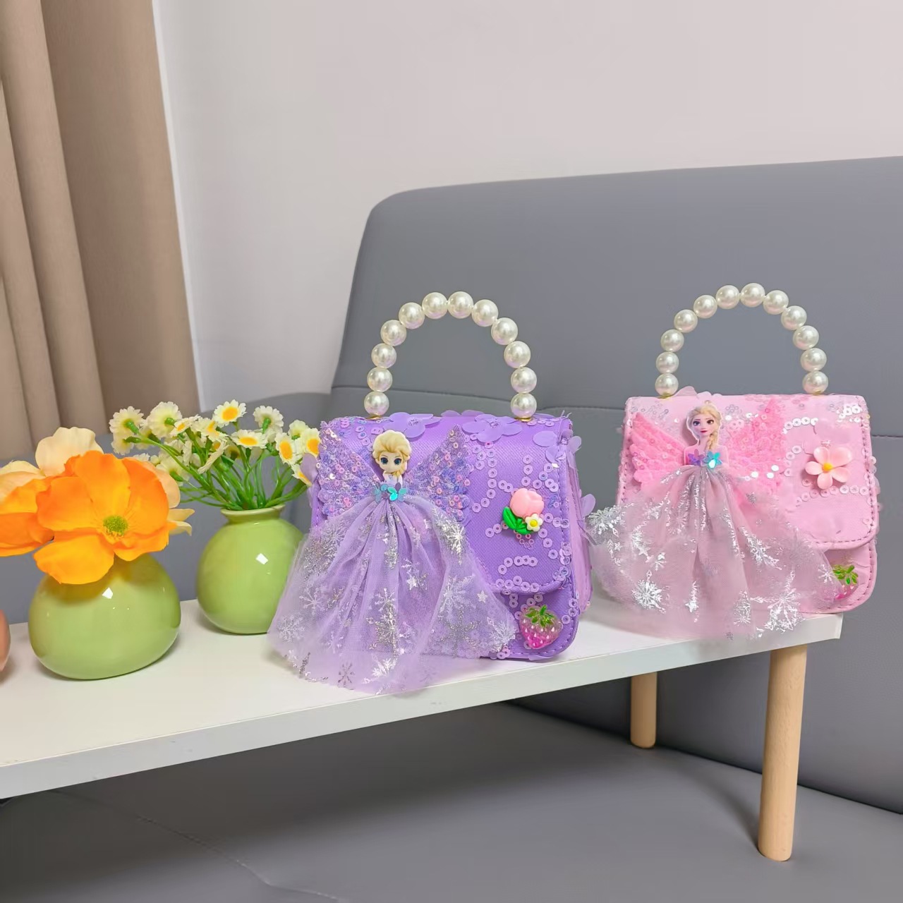 Bolso de perla arco princesa Elsa cambio bolso accesorios bolso de Año Nuevo para chicas bolso de dibujos animados bolso cuadrado