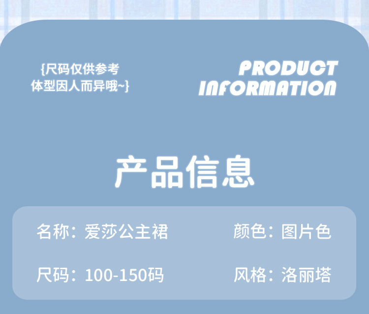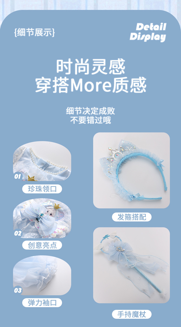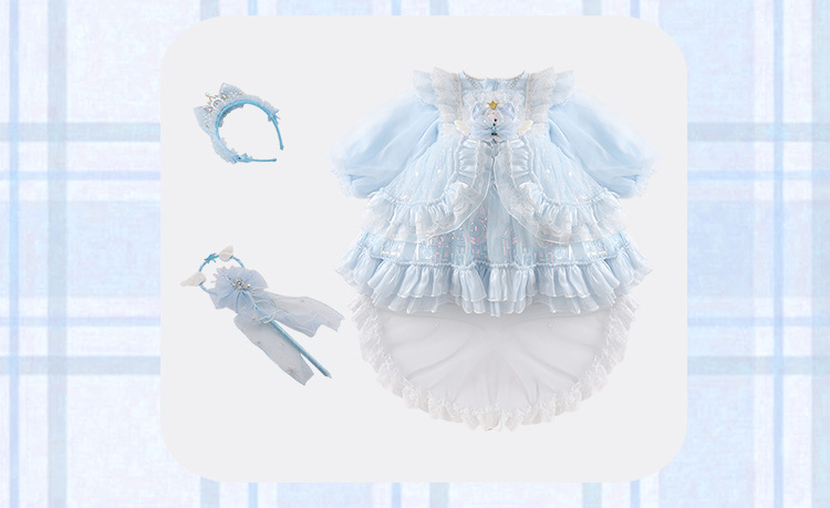 | Color | Falda azul, falda + varita mágica, falda + banda de pelo, falda + varita mágica + banda de pelo |