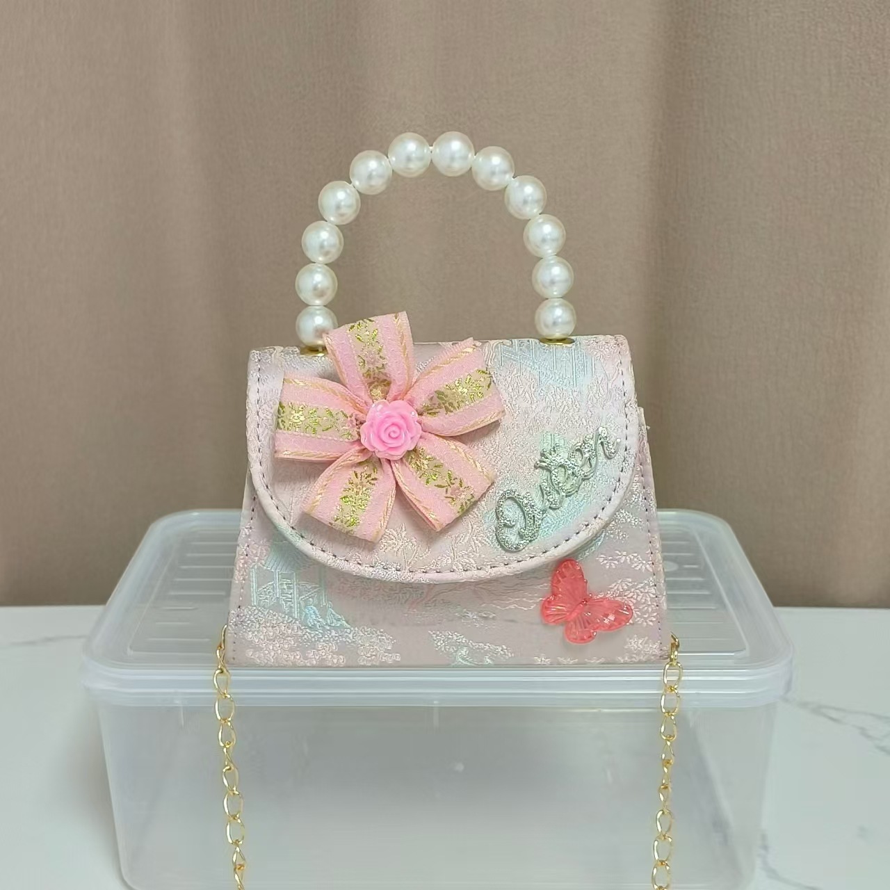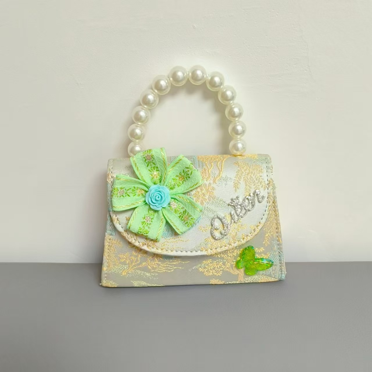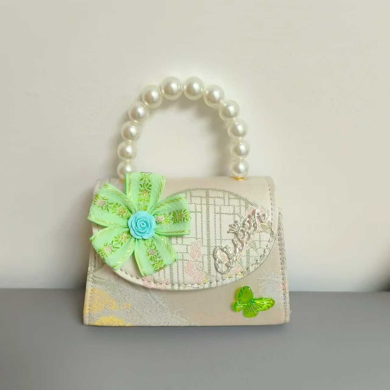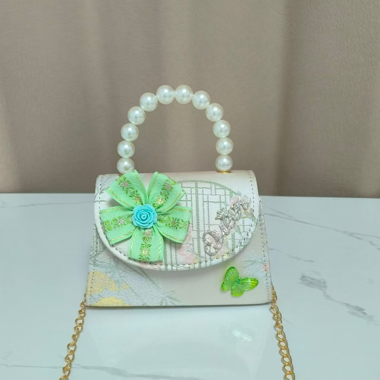 花朵公主包国风唐装配饰包珍珠手提包单肩斜挎包六一链条小方包
