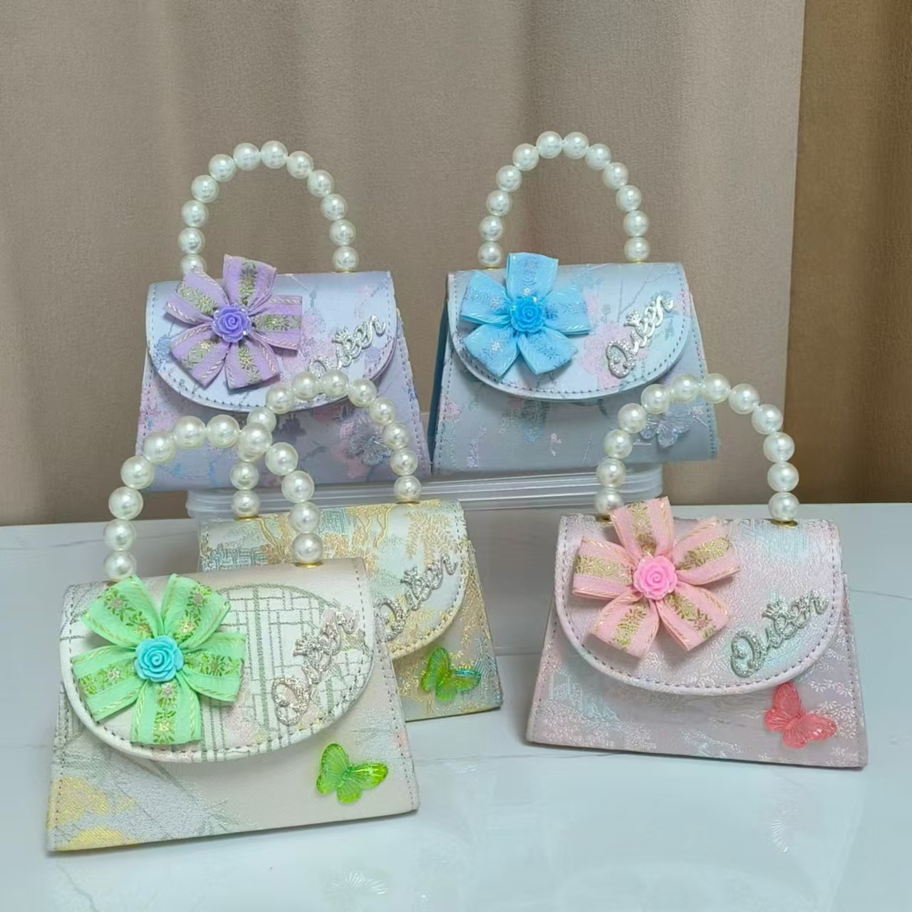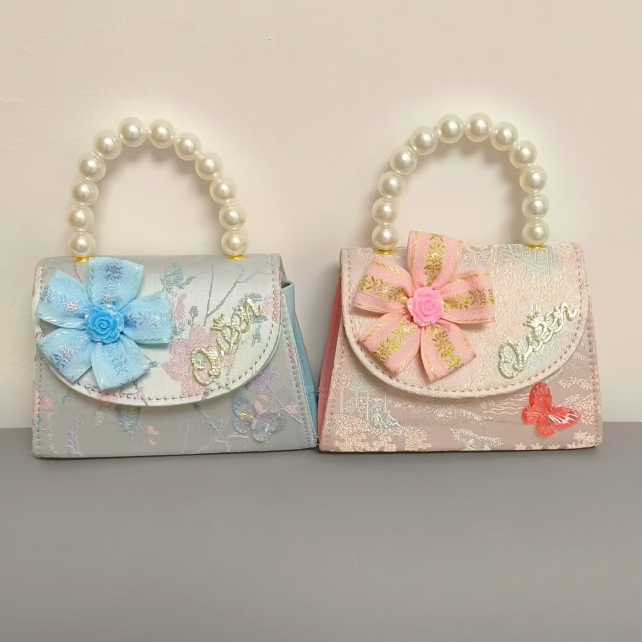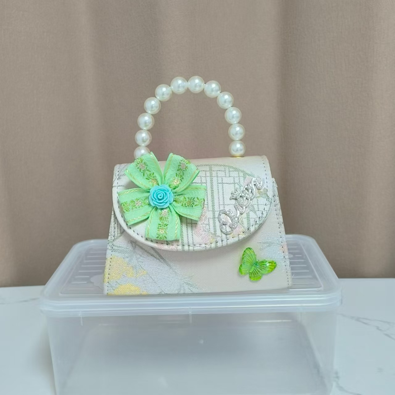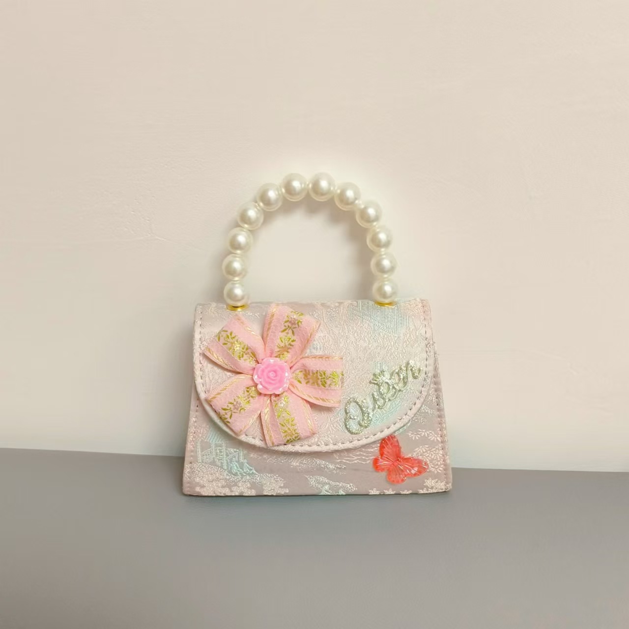 花朵公主包国风唐装配饰包珍珠手提包单肩斜挎包六一链条小方包